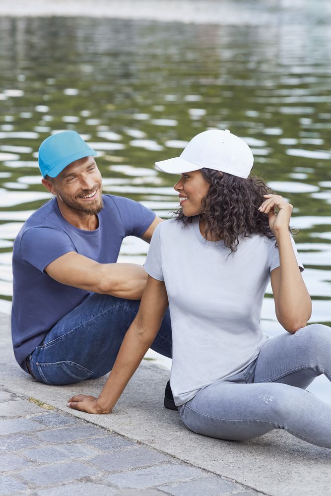 Легкий хлопок с начесом, жесткий козырек. Бейсболка из 5 клиньев без шва на лбу. 4 отверстия с вышивкой для вентиляции, регулируемая застежка на липучке сзади.