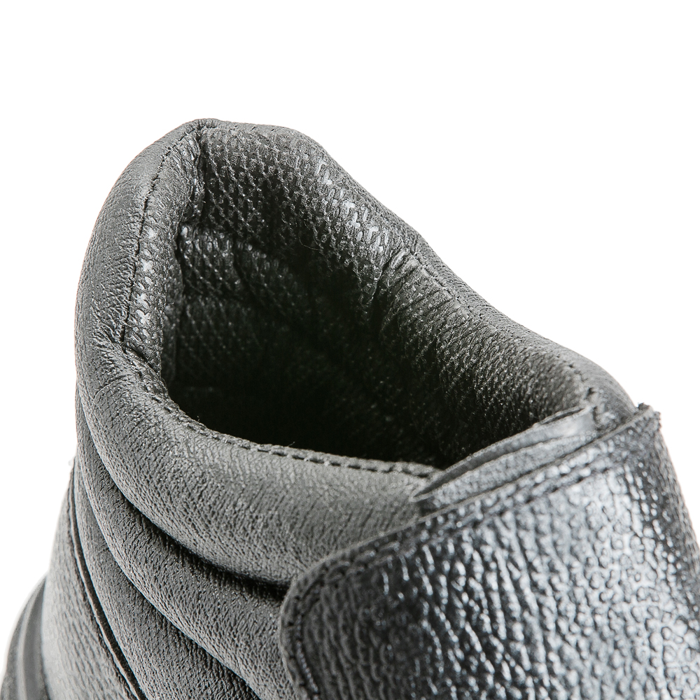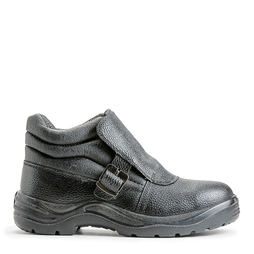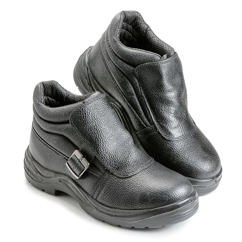 Ботинки для сварочных работ изготовлены методом прямого к заготовке верха обуви промежуточного слоя подошвы из полиуретана, с ходовым слоем из резины на основе нитрильного каучука. Верх ботинок из натуральной кожи толщиной 1,8 – 2,0 мм. Подкладка из текстильного материала. В верхней части ботинок мягкий кант. Ботинки имеют защитный клапан, препятствующий попаданию искр и брызг расплавленного металла внутрь ботинка. Стелька вкладная. В носочной части внутренний защитный подносок из металла ударной прочностью 200 Дж. С боков световозвращающие элементы в виде узких полос. Контрастная отстрочка в тон цвета подкладки. Подошва двухслойная, ходовой слой из износостойкой, термостойкой резины на основе нитрильного каучука. Подошва выдерживает температуру 300С при контакте с нагретыми поверхностями. Есть внутренняя амортизирующая вставка в пяточной части подошвы. Глубина профиля ходового слоя подошвы составляет 3,5 мм. Рельеф подошвы снижает риски скольжения при работе на скользких поверхностях. Цвет ботинок черный.