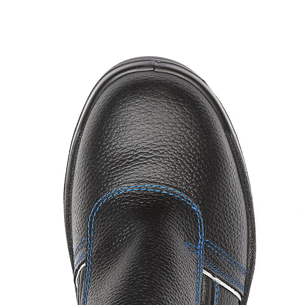 Ботинки для сварочных работ утепленные изготовлены методом литья к заготовке верха обуви промежуточного слоя подошвы из полиуретана, с ходовым слоем из резины на основе нитрильного каучука. Верх ботинок из натуральной кожи толщиной 1,8 – 2,0 мм. Подкладка ботинок из искусственного меха. В верхней части ботинок мягкий кант. Ботинки имеют защитный клапан, препятствующий попаданию искр и брызг расплавленного металла внутрь. Стелька вкладная. В носочной части внутренний защитный подносок из металла ударной прочностью 200 Дж. С боков световозвращающие элементы в виде узких полос. Rонтрастная отстрочка в тон цвета подкладки. Подошва двухслойная, МБС, ходовой слой из износостойкой, термостойкой резины на основе нитрильного каучука. Подошва выдерживает температуру 300С при контакте с нагретыми поверхностями. Есть внутренняя амортизирующая вставка в пяточной части подошвы. Глубина профиля ходового слоя подошвы 3,5 мм. Рельеф подошвы снижает риски скольжения при работе на скользких поверхностях. Цвет ботинок черный