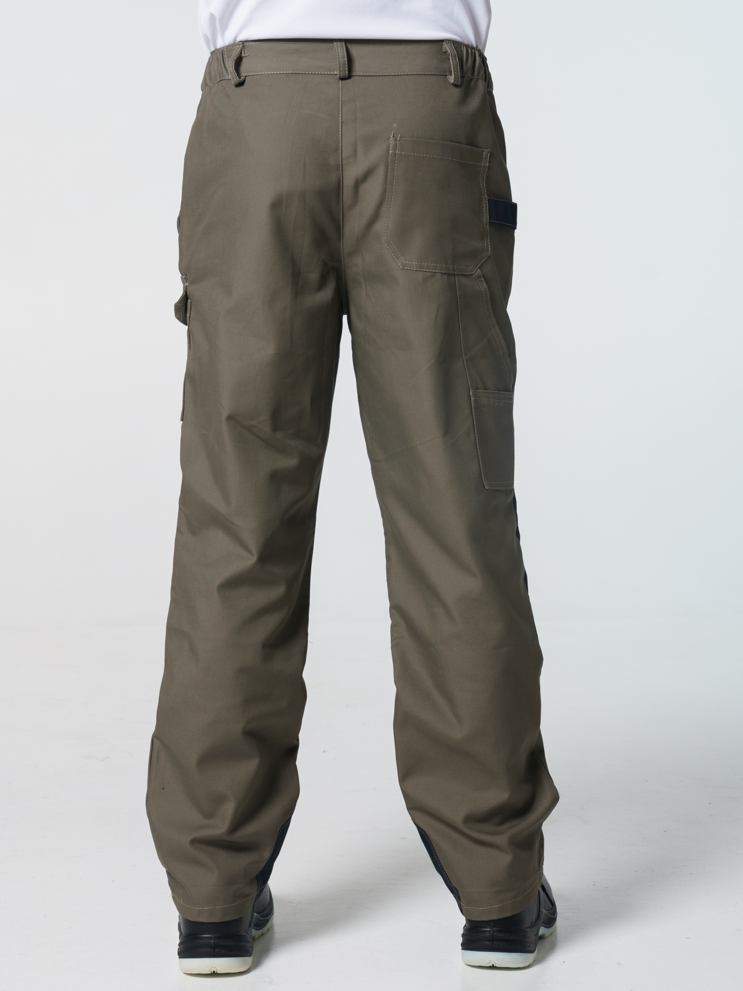 Брюки ФАВОРИТ-МЕГА прямые; с застёжкой гульфика на тесьму - «молния»; с застежкой пояса на одну петлю и пуговицу; с боковыми внутренними карманами; с карманами и фигурными клапанами застегивающиеся на потайную липучку на боковом шве; с фигурным карманом на задней половинке; с карманами под инструменты; с наколенниками. Пояс брюк частично стянут резинкой ткацкой по бокам. В брюках предусмотрена лента светоотражающая (мелкодисперсная белая) 50 мм фигурной формы.