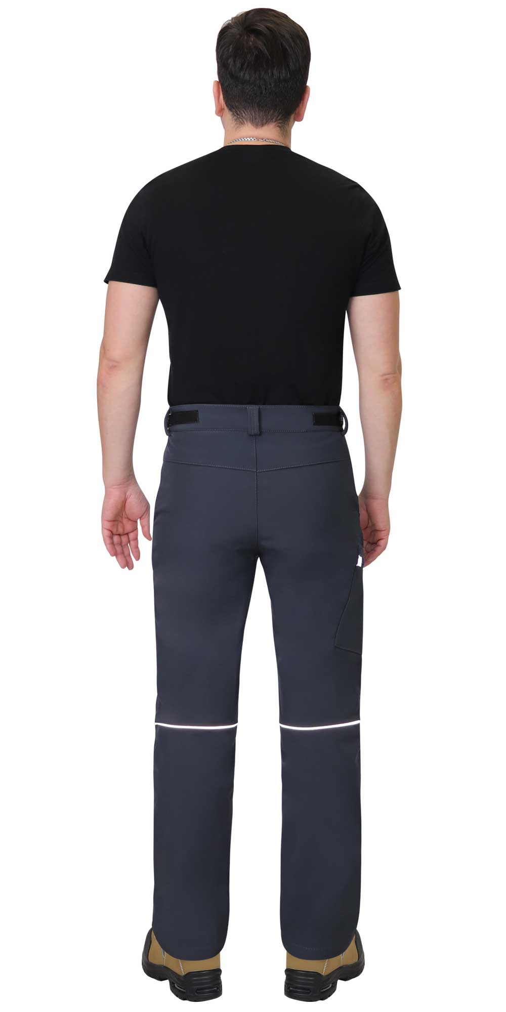 Брюки прямого кроя с застежкой гульфика на молнию, с отрезным поясом, с внутренними боковыми карманами и накладным карманом на правом боковом шве. В брюках предусмотрены светоотражающие элементы на накладном кармане и кант на задних половинках для обозначения сигнальной видимости в тёмное время суток.
