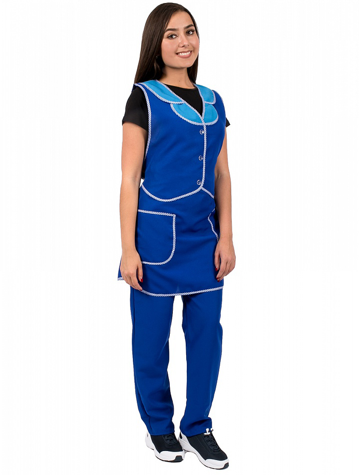 - объем фартука регулируется завязками-поясами, все срезы фартука обработаны кантом из капроновой ткани