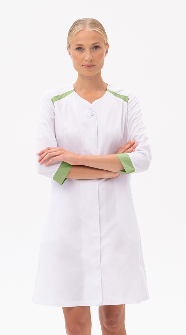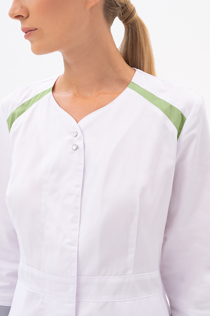 Халат МИРАЖ белый/зеленый тк. Оптима Хал 857 (ЧЗ) ( 80-84/158-164)