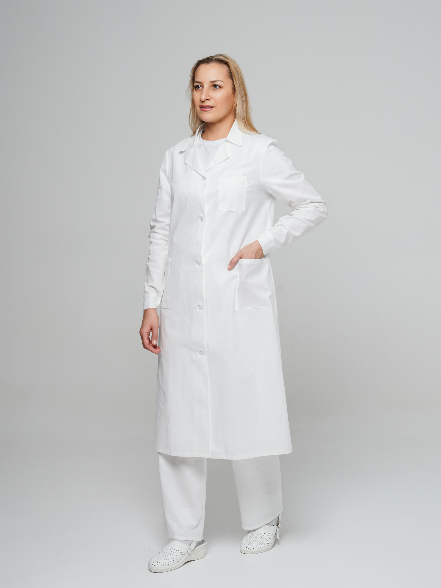 Халат медицинский бязь №201 отбел. ГОСТ ЖЕНСКИЙ (ЧЗ) (152-156/194-200)