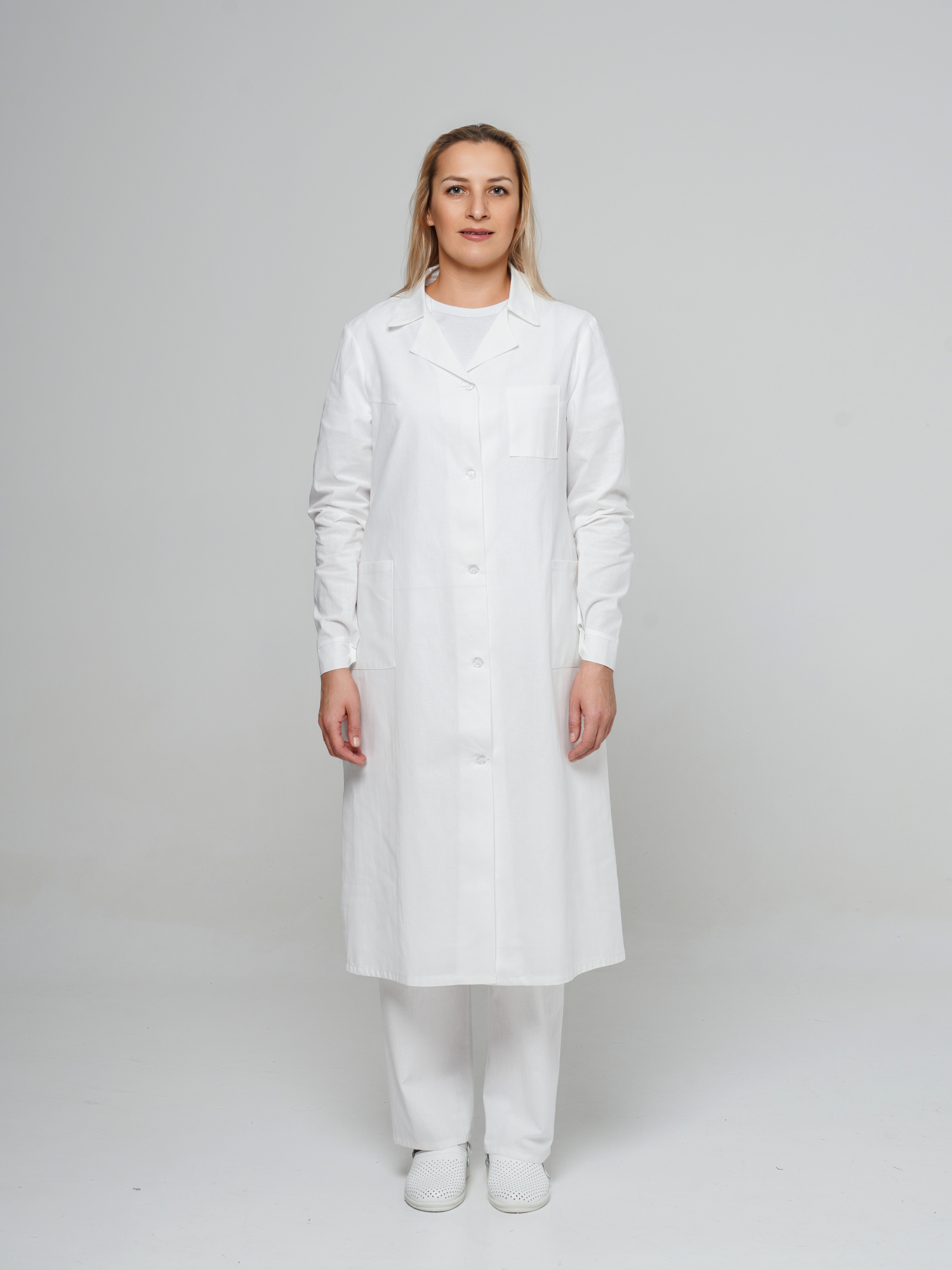 Халат медицинский бязь №201 отбел. ГОСТ ЖЕНСКИЙ (ЧЗ) (104-108/158-164)