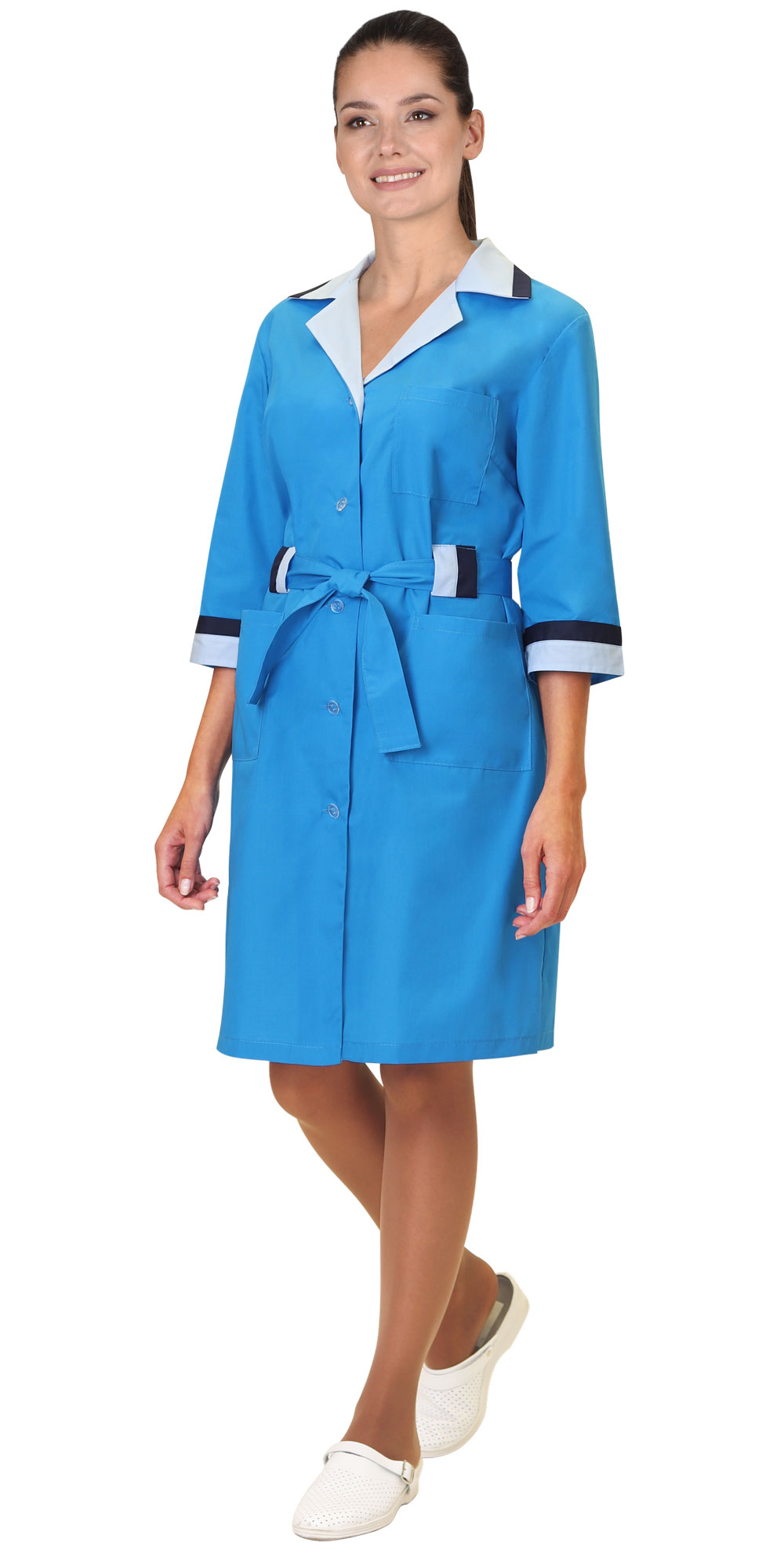 Халат "СИРИУС-ФЛОРА" женский со светло-голубым воротником (ЧЗ) ( 88-92/170-176)