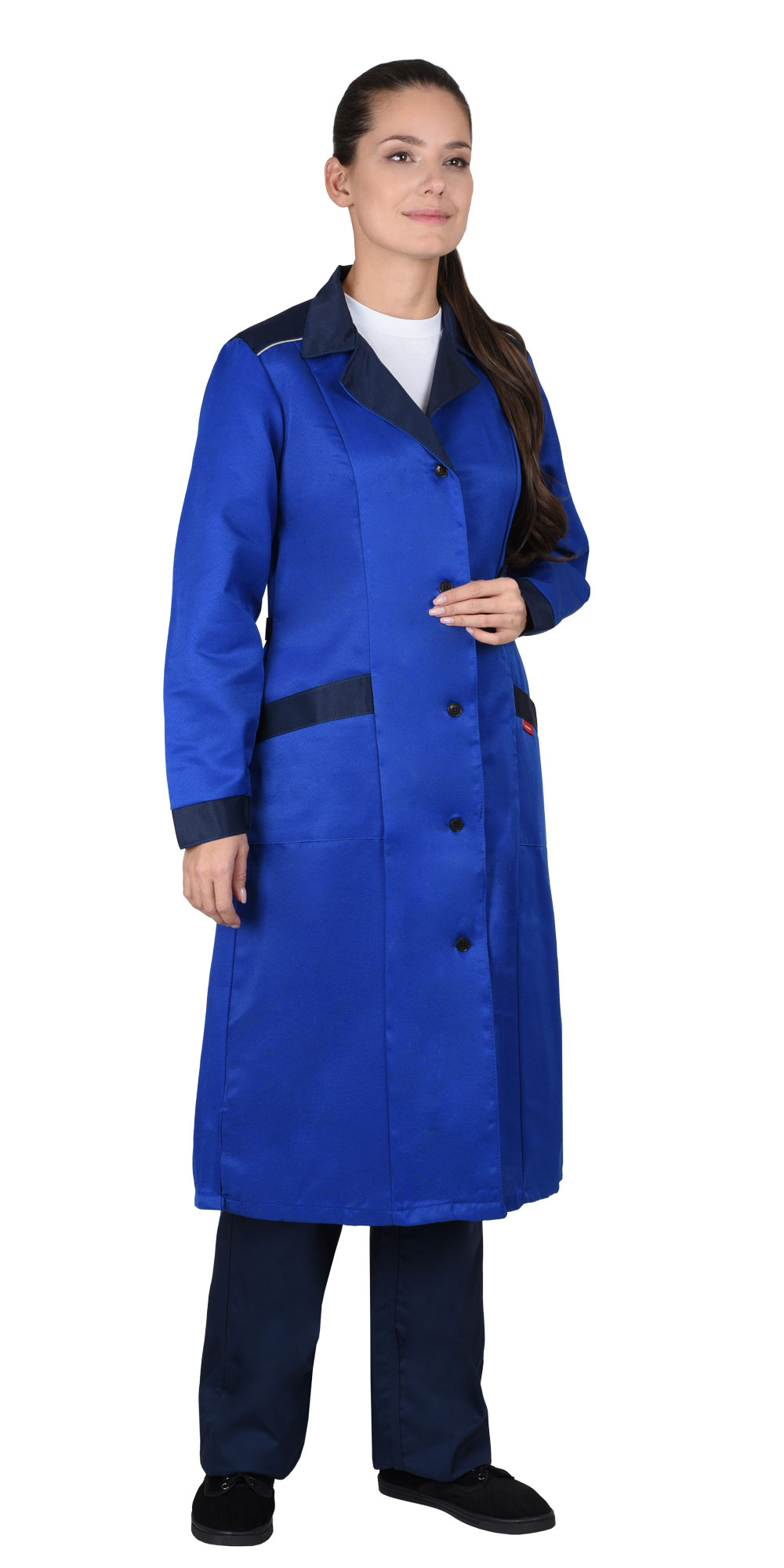 Халат "Сириус-ТЕХНОЛОГ" женский (тк. смесовая) василёк с тёмно-синим