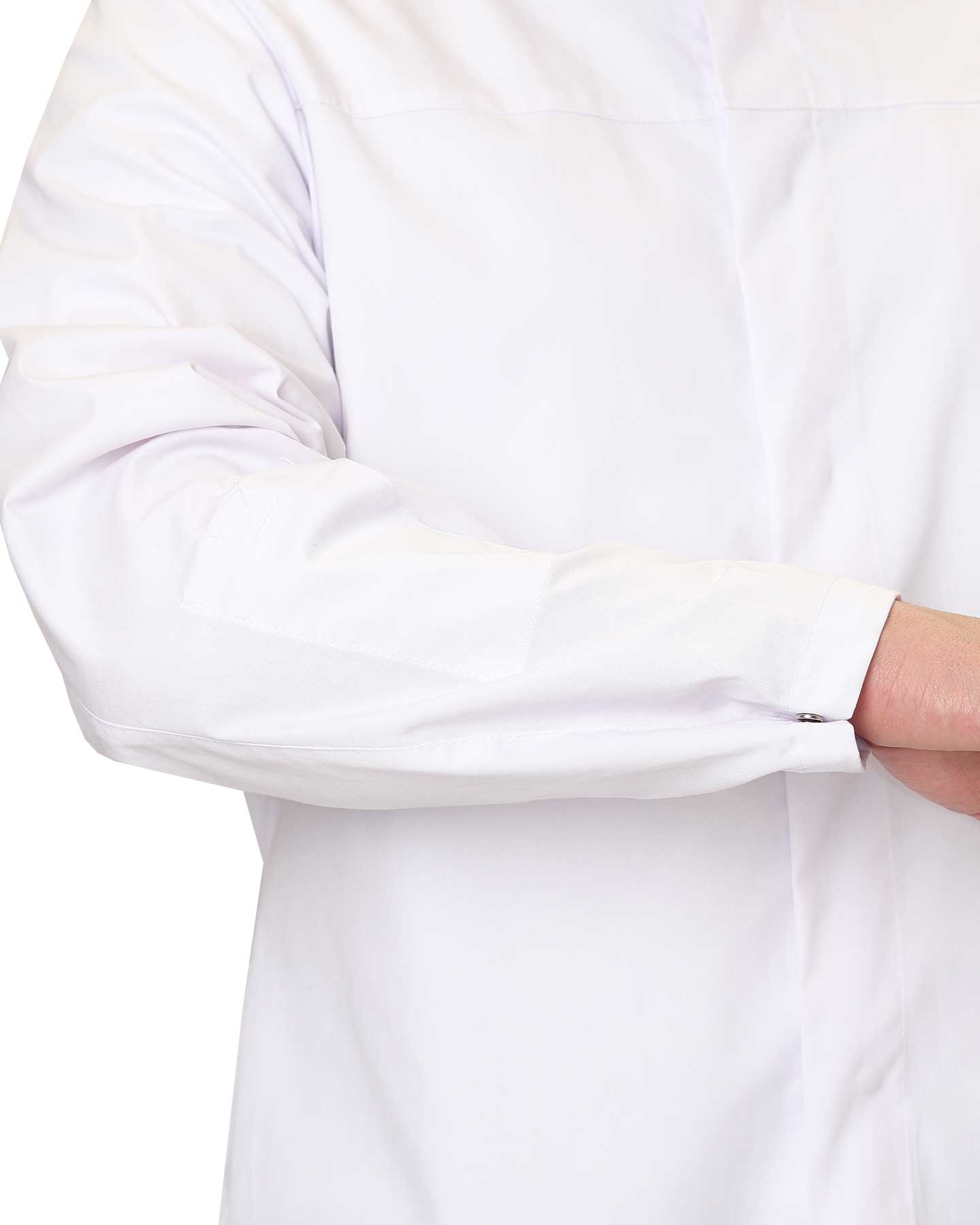 Халат для пищевого производства отвечает требованиям НАССР (ХАССП). Гигиеническая безопасность костюма достигается за счет внутренних карманов и скрытых застежек.