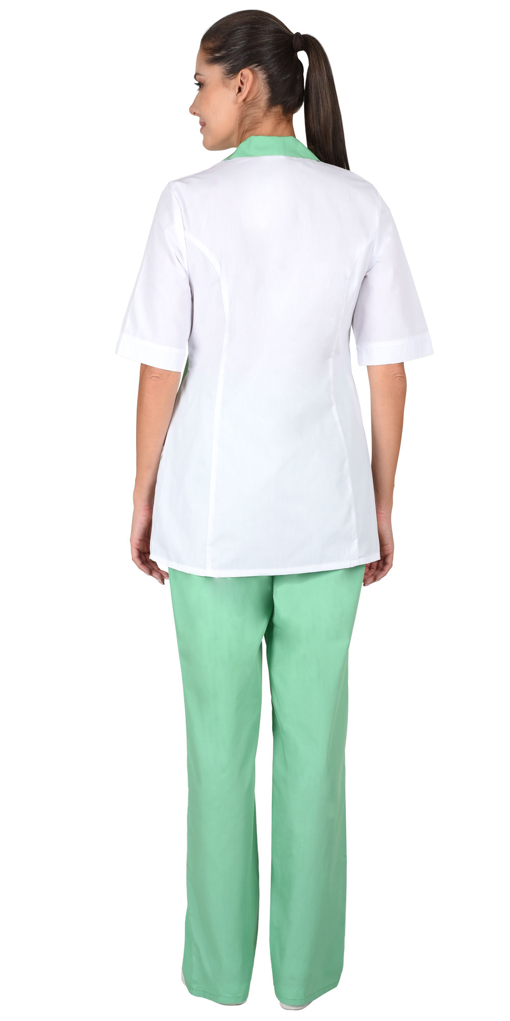 Костюм "Флоренция" женский: куртка, брюки, колпак белый с салатовым (ЧЗ) (112-116/182-188)