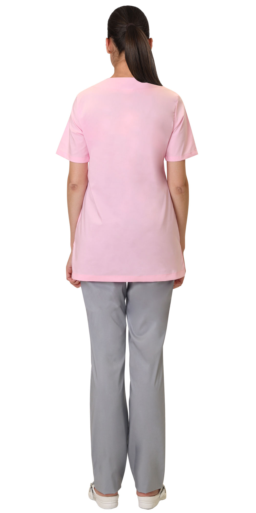 Костюм "КЭТРИН" женский: блуза, брюки, розовый с серым (ЧЗ) ( 80-84/158-164)