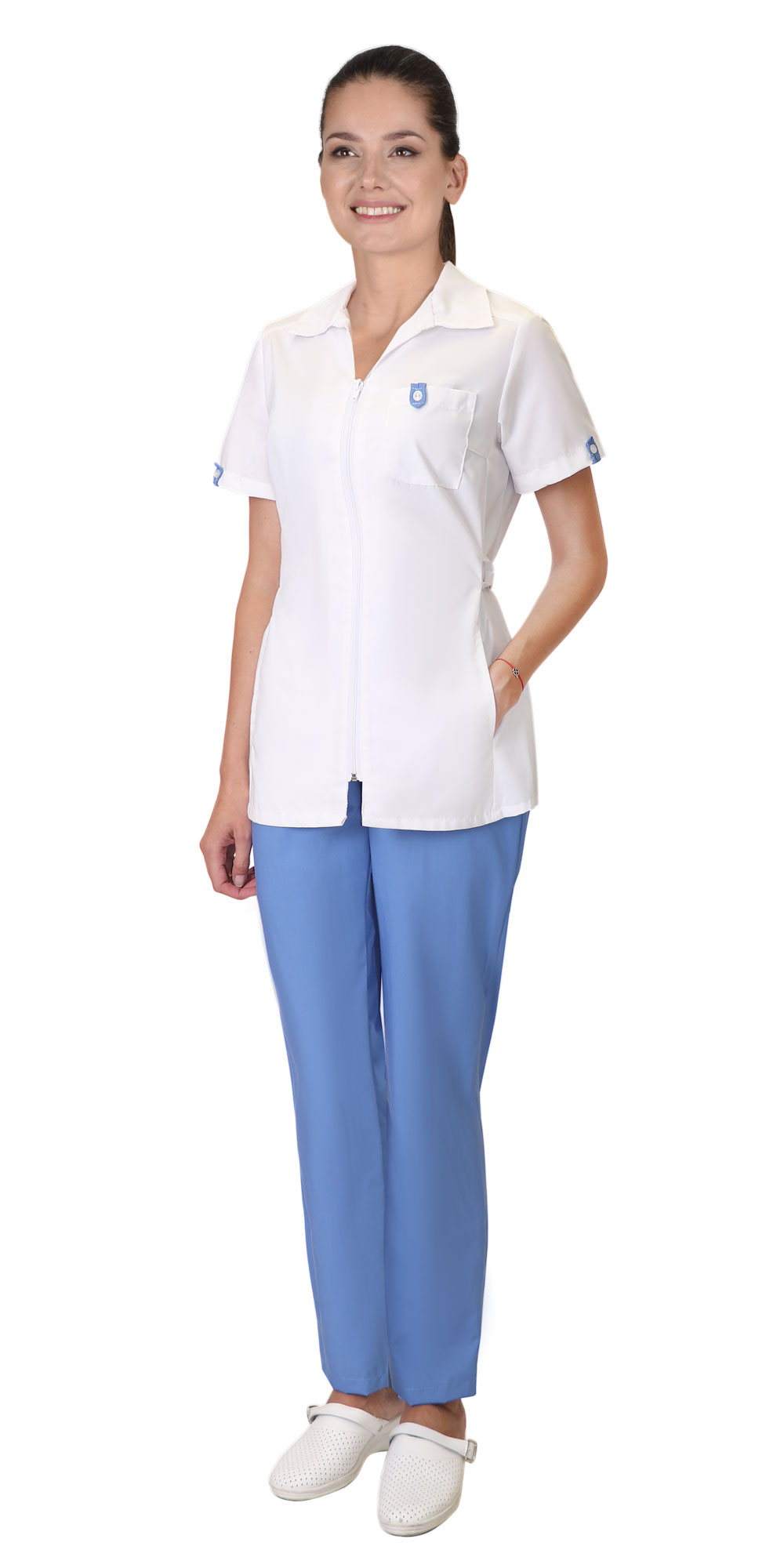 Костюм "ЛИРА" женский: блуза, брюки, белый с голубым