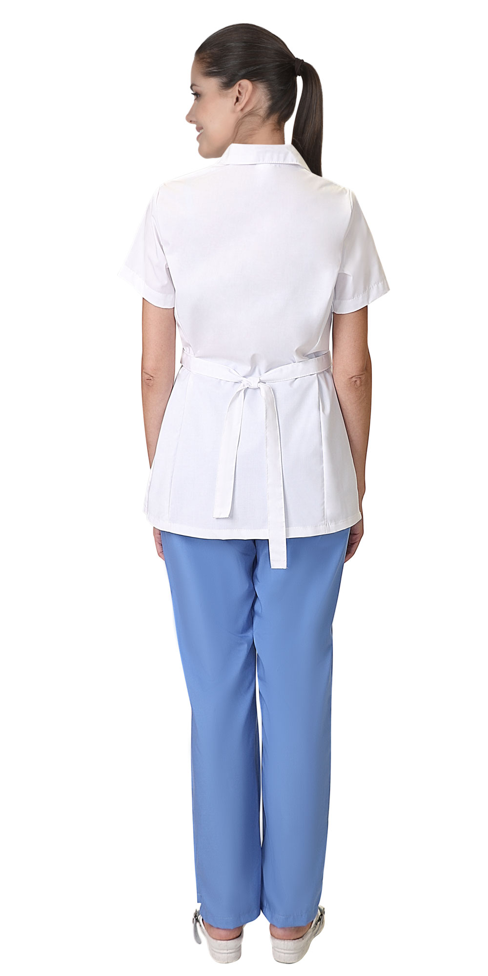 Костюм "ЛИРА" женский: блуза, брюки, белый с голубым ( 80-84/158-164)
