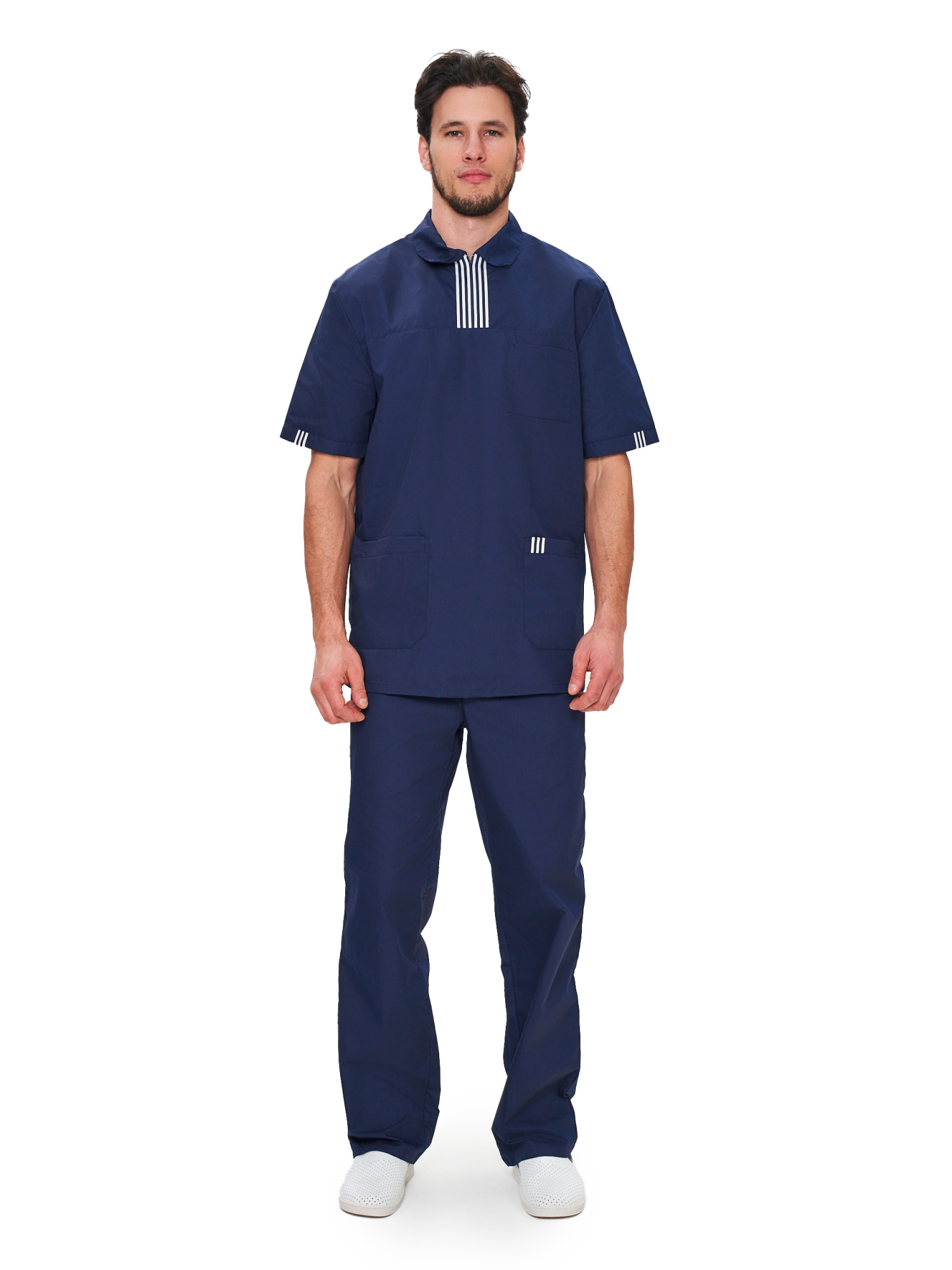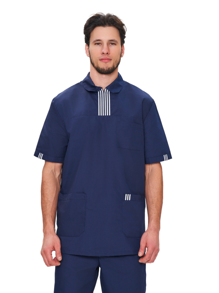 Современный удобный мужской костюм со свободной посадкой, рекомендован для сферы косметологии и работников медицинских учреждений из высококачественной смесовой ткани прекрасно переносят многократные стирки и выглядят презентабельно даже при длительных сроках эксплуатации. Широкий размерный ряд продукции позволит без труда подобрать костюм правильно по фигуре, в соответствии со спецификой профессии и с учетом индивидуальных требований сотрудника. Костюм мужской «Эра» для косметологов и медработников прост в уходе, не мнется и быстро сохнет, а материал долгое время сохранит свой первоначальный яркий цвет. Костюм состоит из блузы и брюк темно-синего цвета с отделкой декоративной лентой. Сегодня современная мода вмешивается не только в подиумные и уличные образы. Она диктует свои правила разным сферам жизни, в том числе в сфере косметологии и медицине. Костюм состоит из прочной смесовой ткани ТИСИ, отталкивающей различного рода загрязнения. Материал устойчив к пятнам и истиранию, тем самым косметологи и медработники всегда будут выглядеть опрятно и привлекательно.