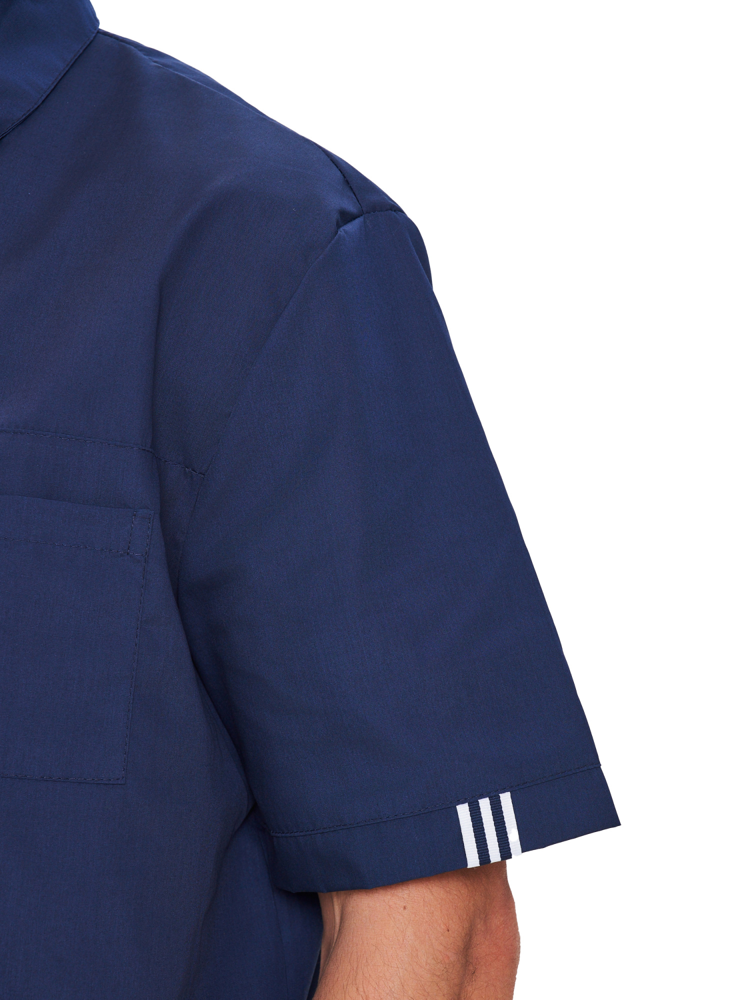 - Карманы: 3 - с левой стороны полочки на уровне груди расположен 1 накладной карман, а в нижней части полочки имеются 2 симметричных накладных кармана с отделкой декоративной лентой.