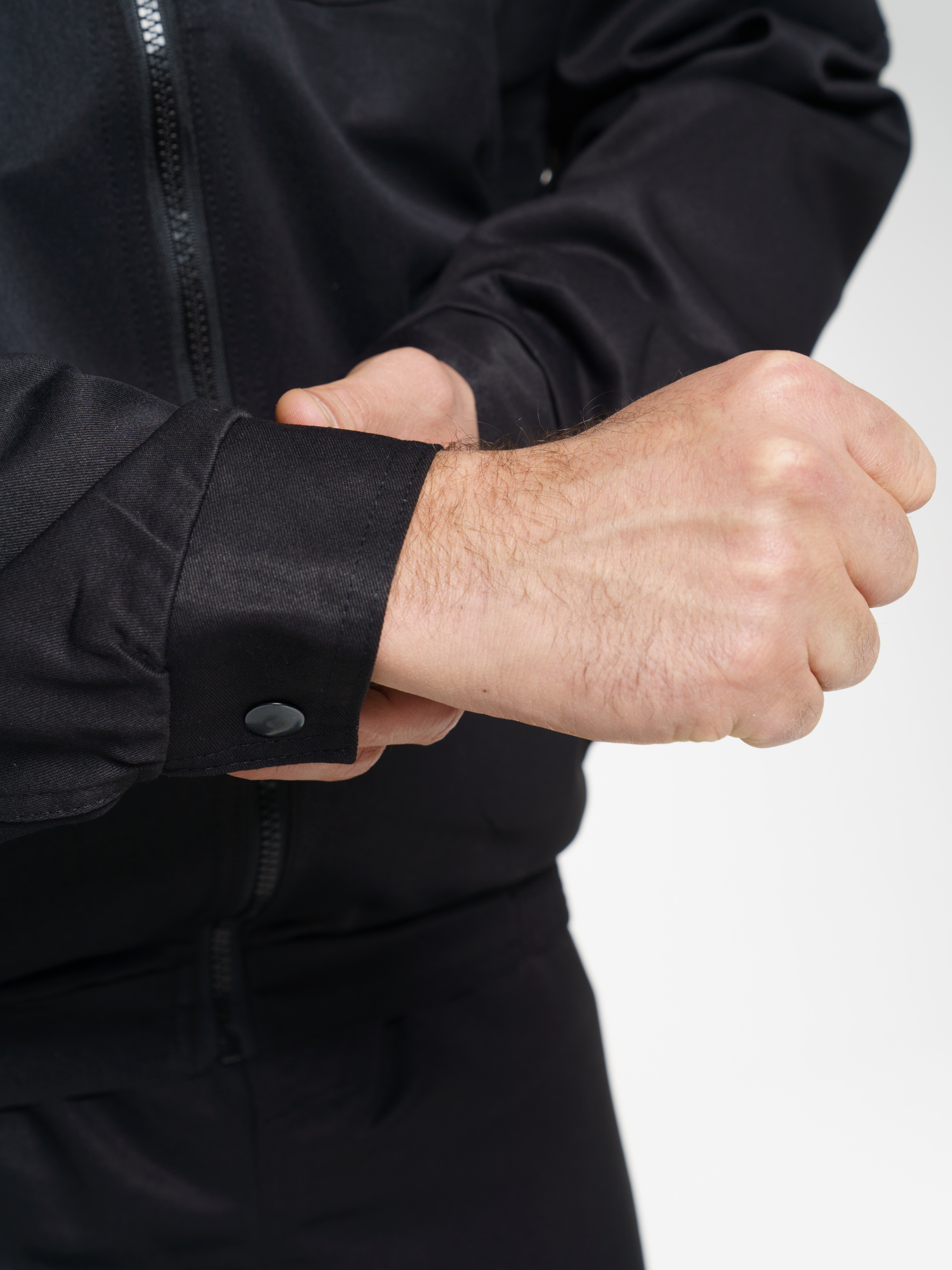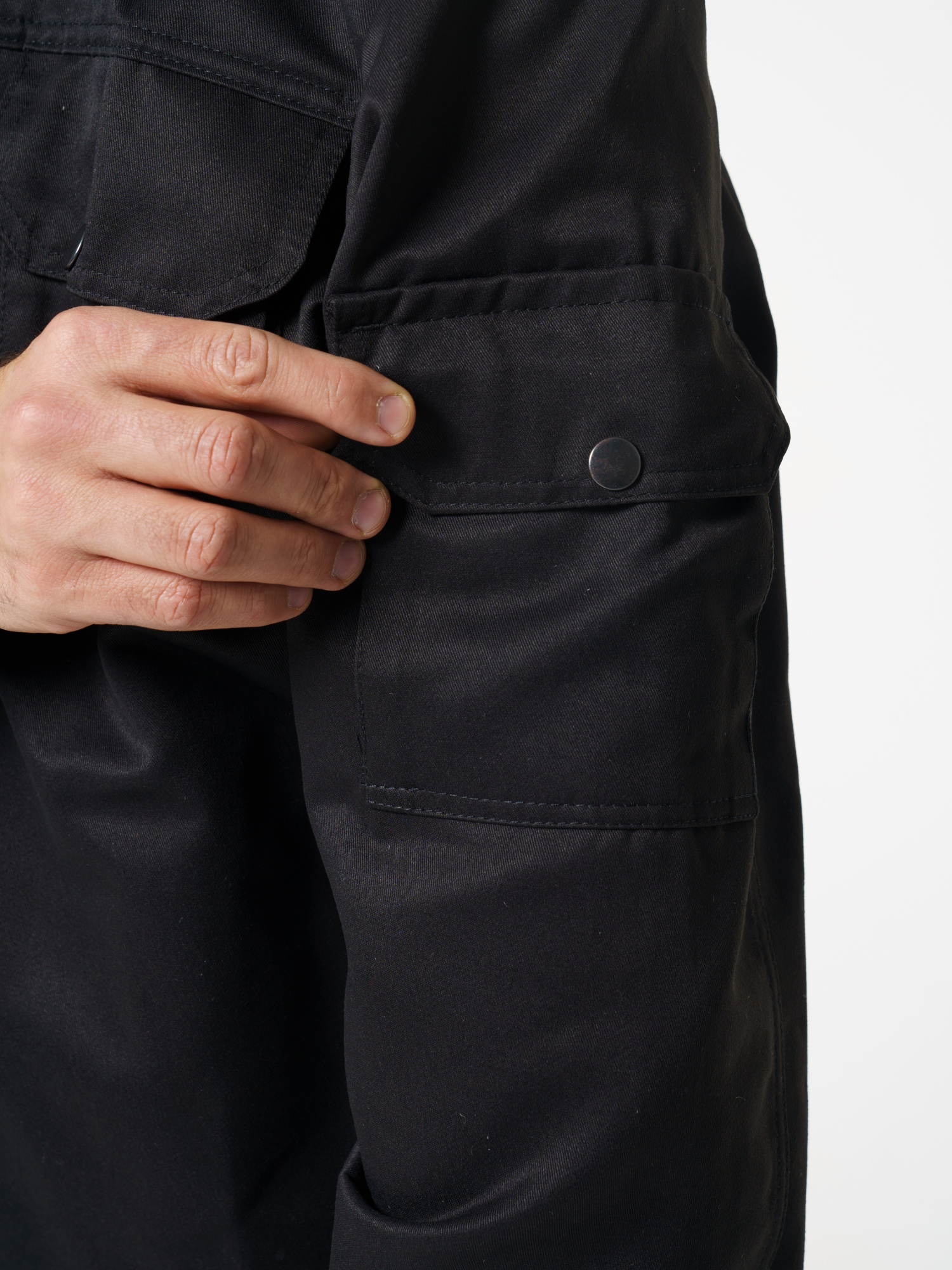 Оснащен объемными нагрудными карманами на клепках, имеет карман на молнии для документов.