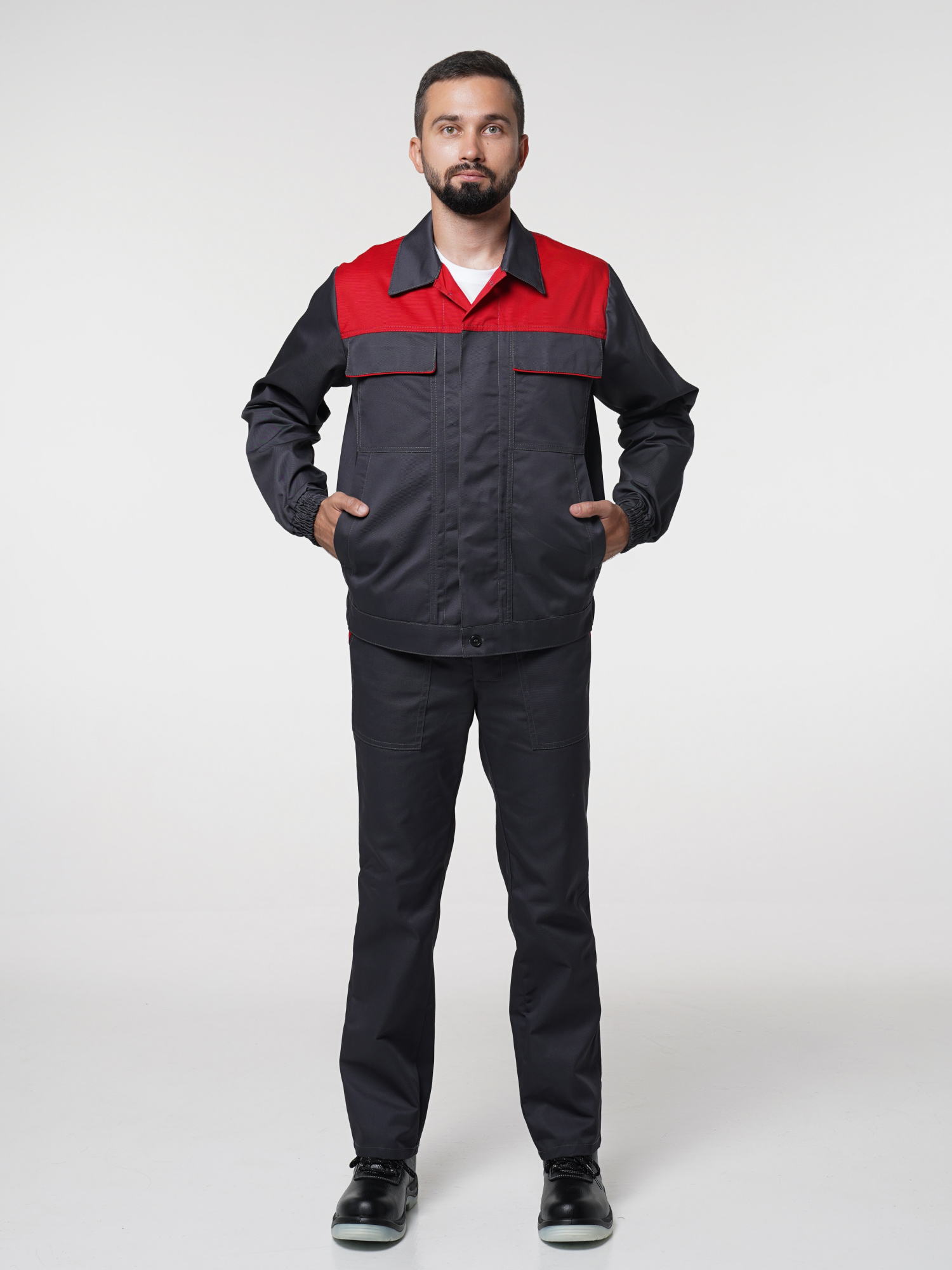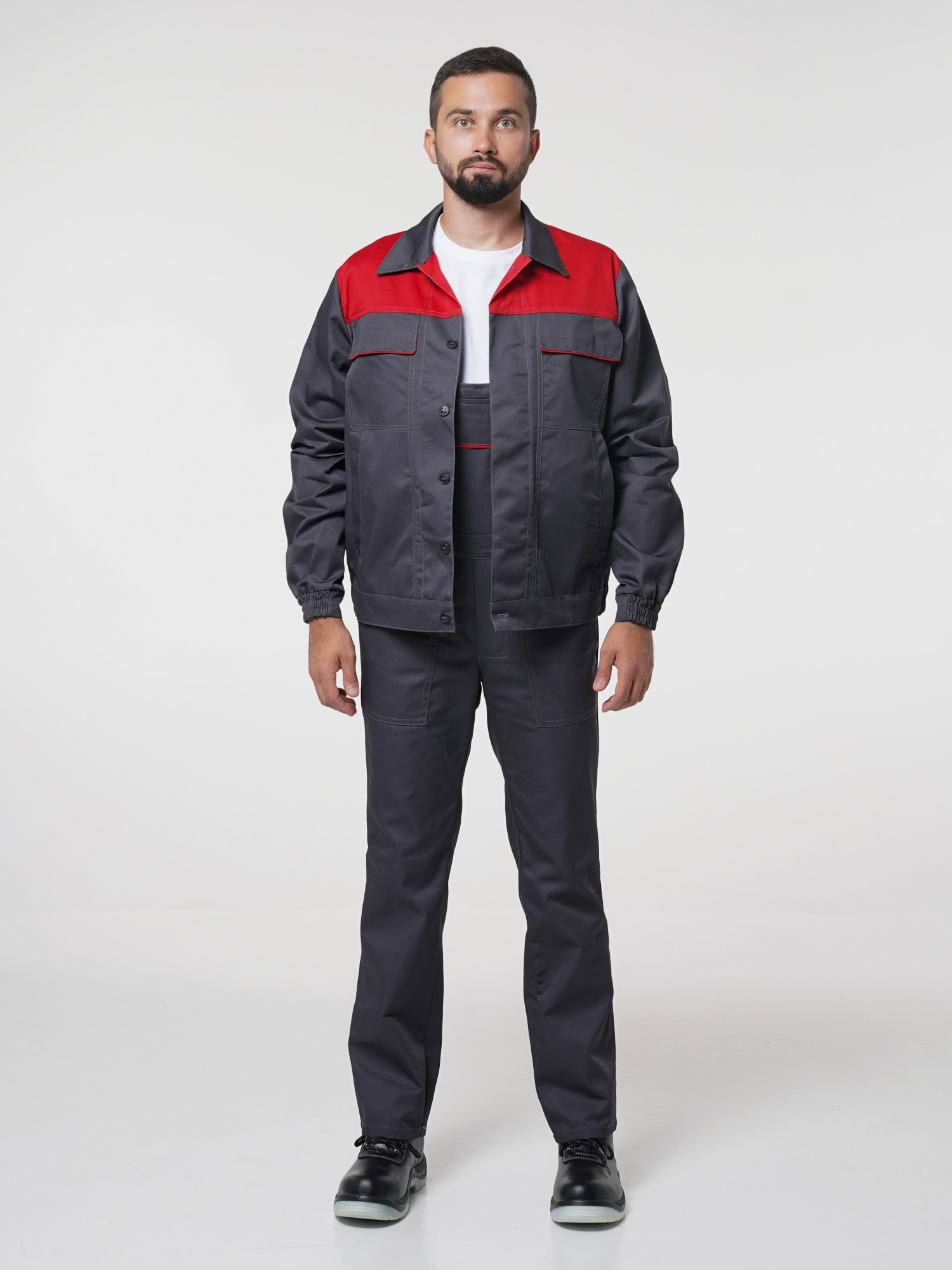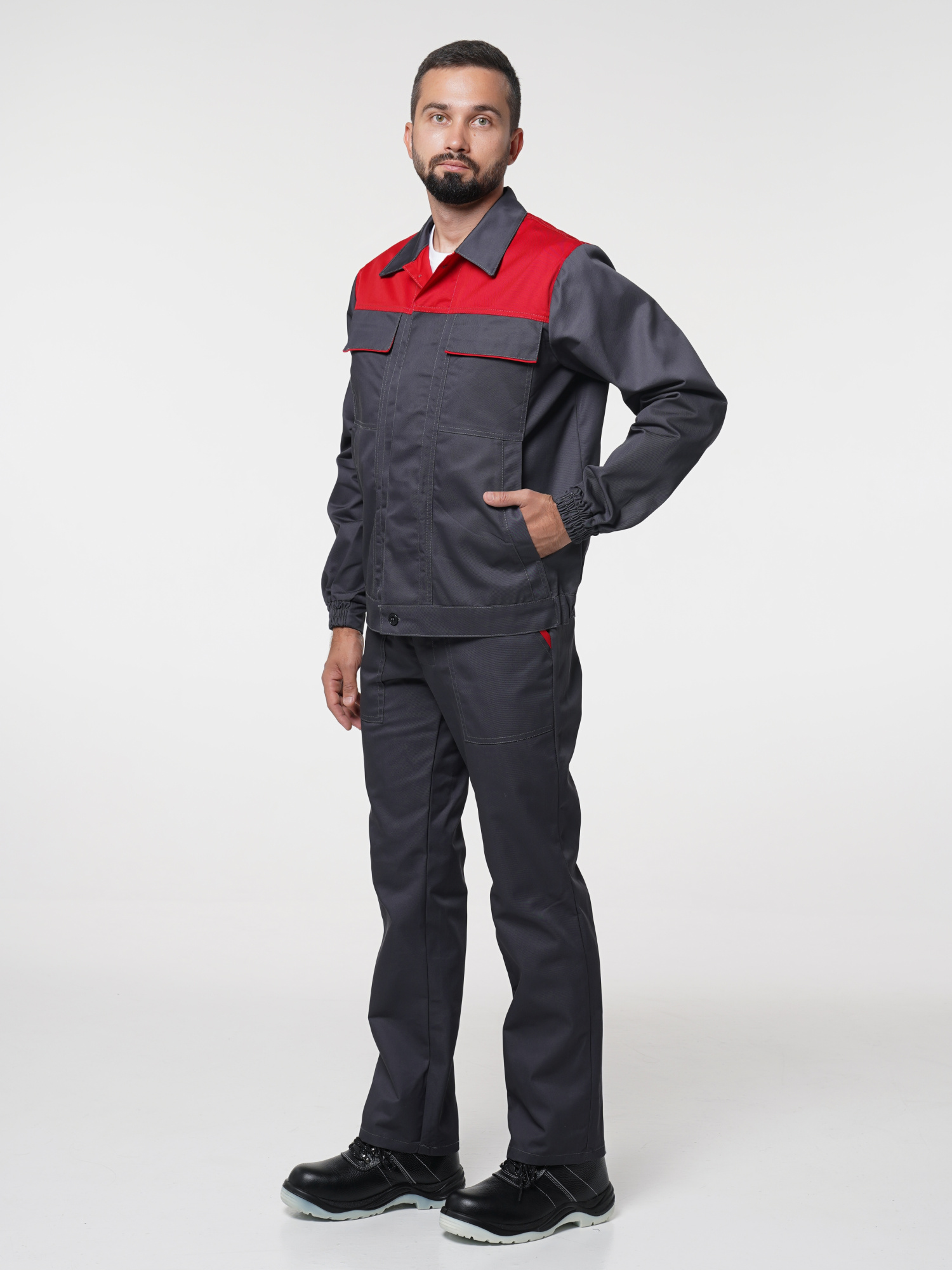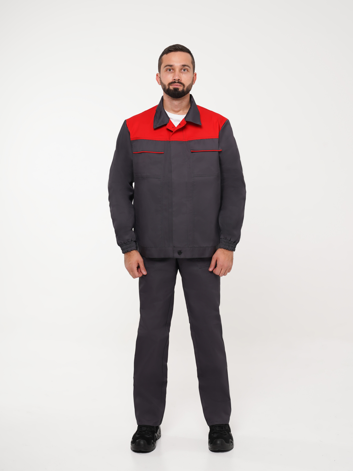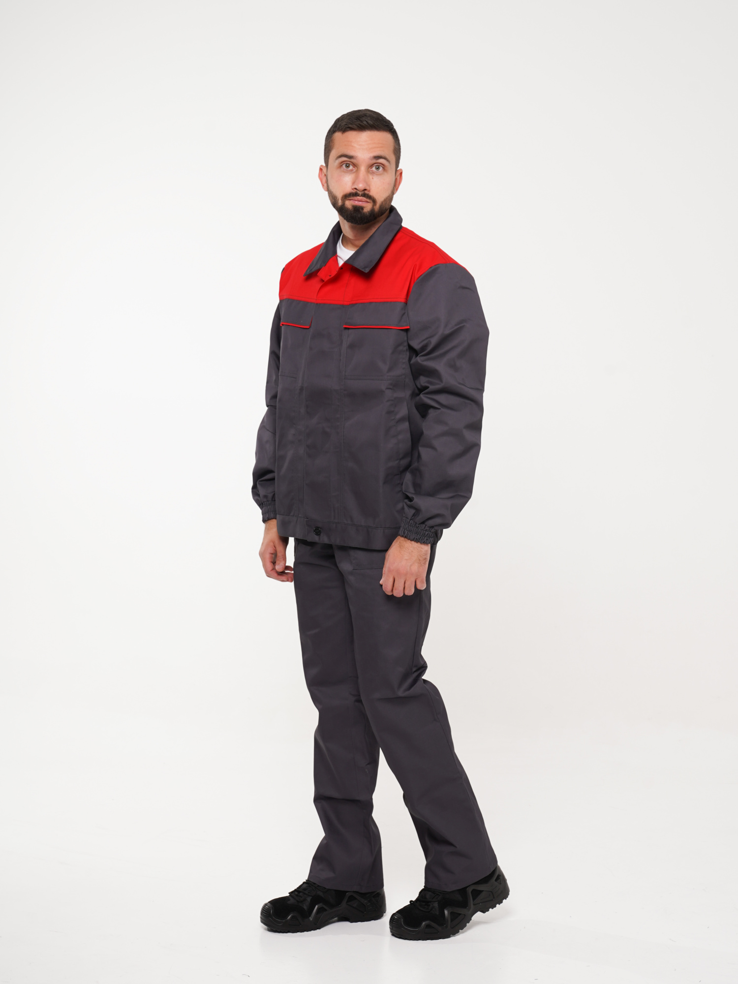 Костюм рабочий Сириус-Мастер №112 т.серый с красным (куртка, полукомбинезон) (ЧЗ) (112-116/170-176)
