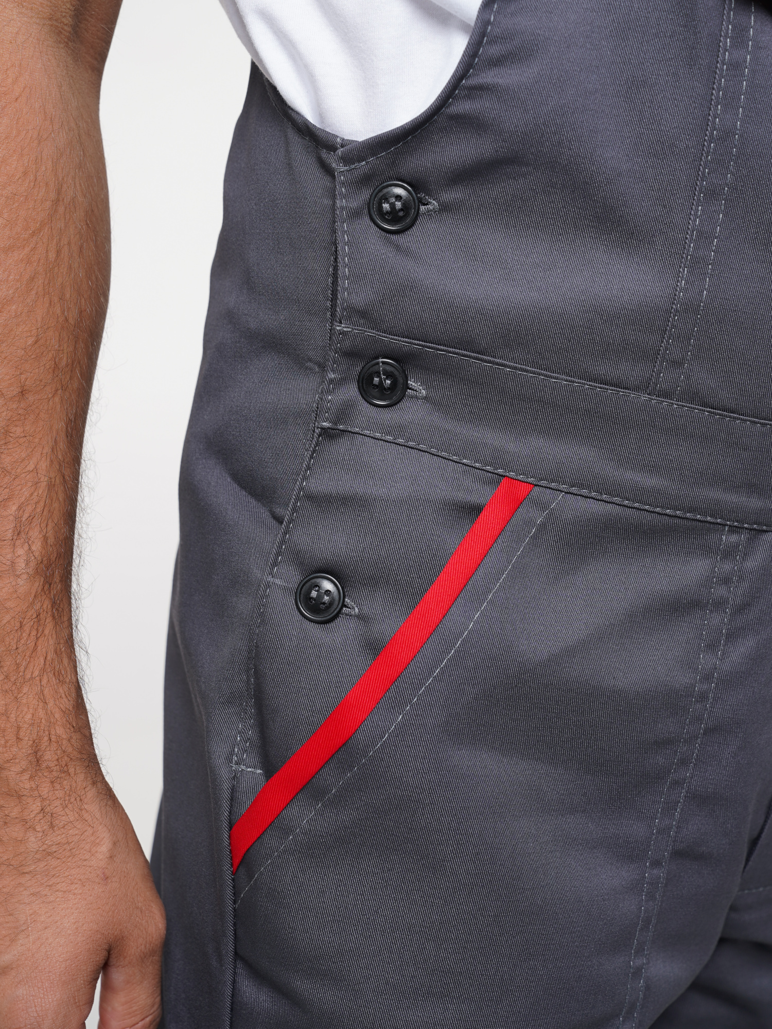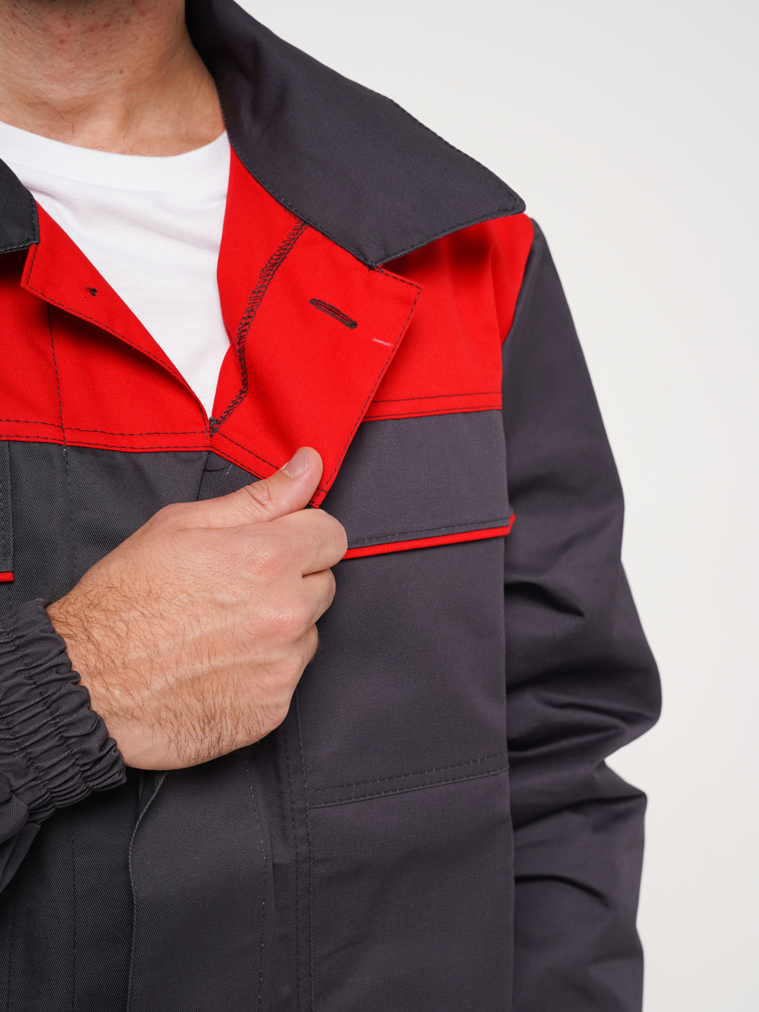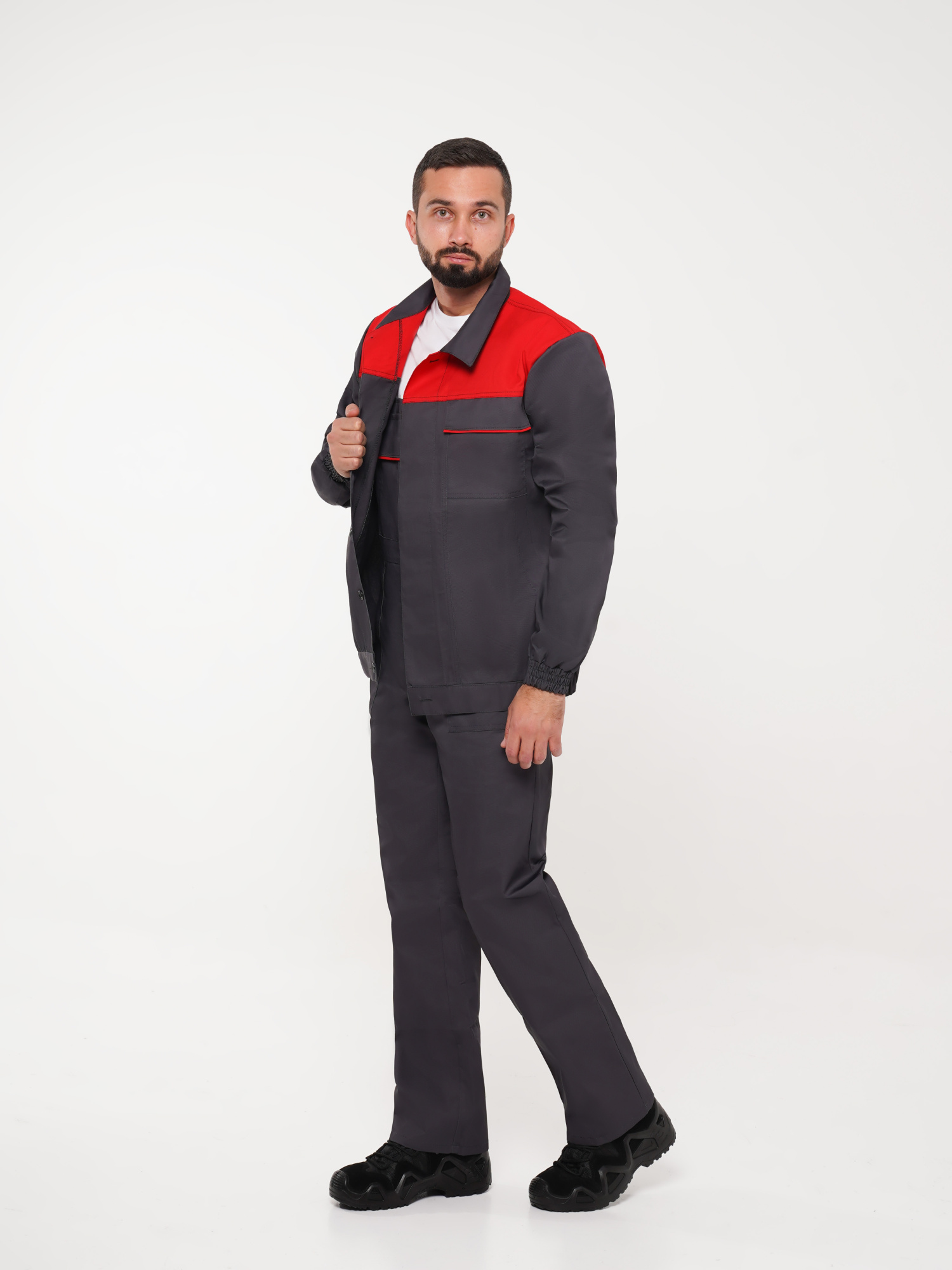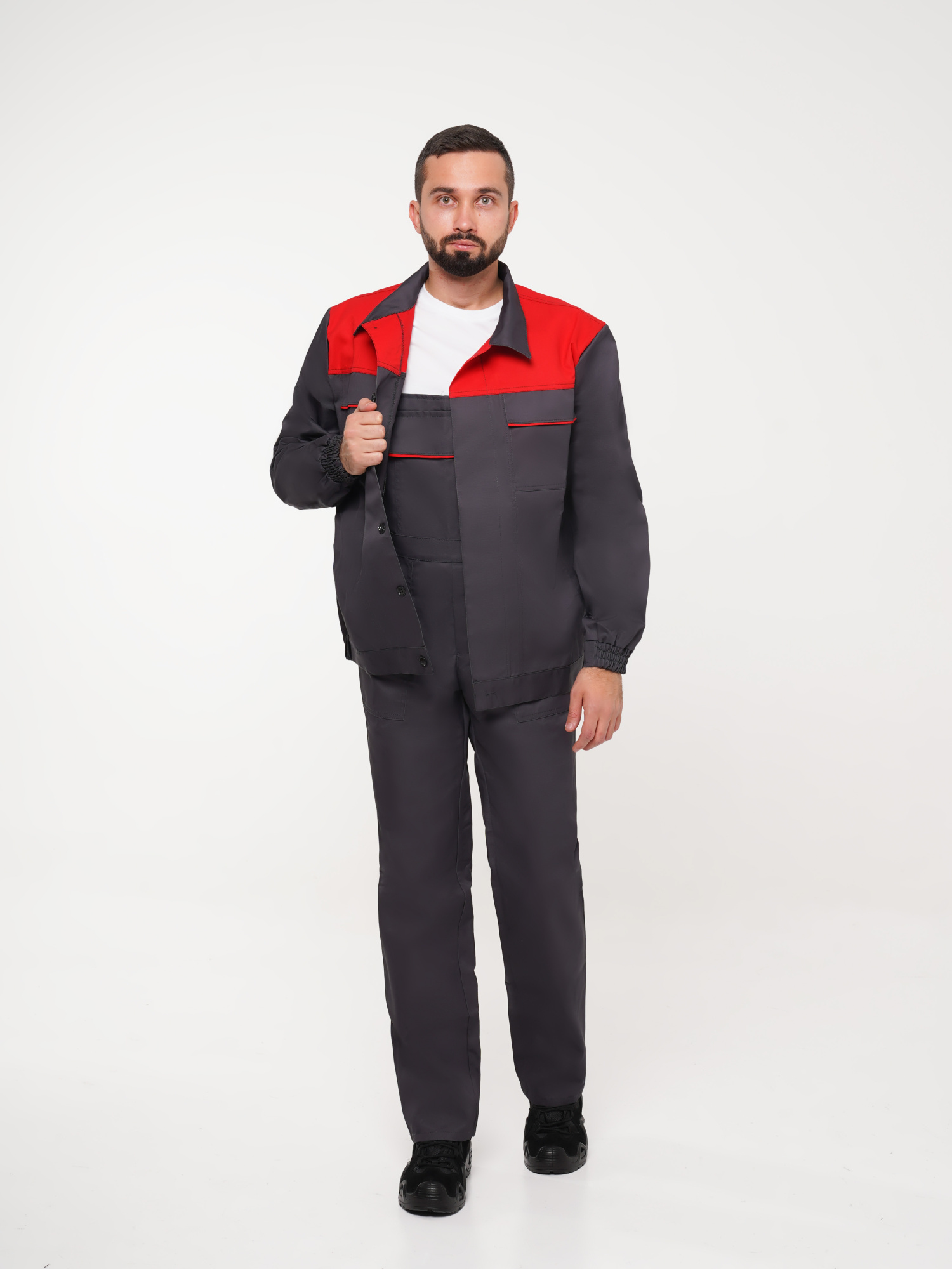 Костюм рабочий Сириус-Мастер №112 т.серый с красным (куртка, полукомбинезон) (ЧЗ) (120-124/170-176)