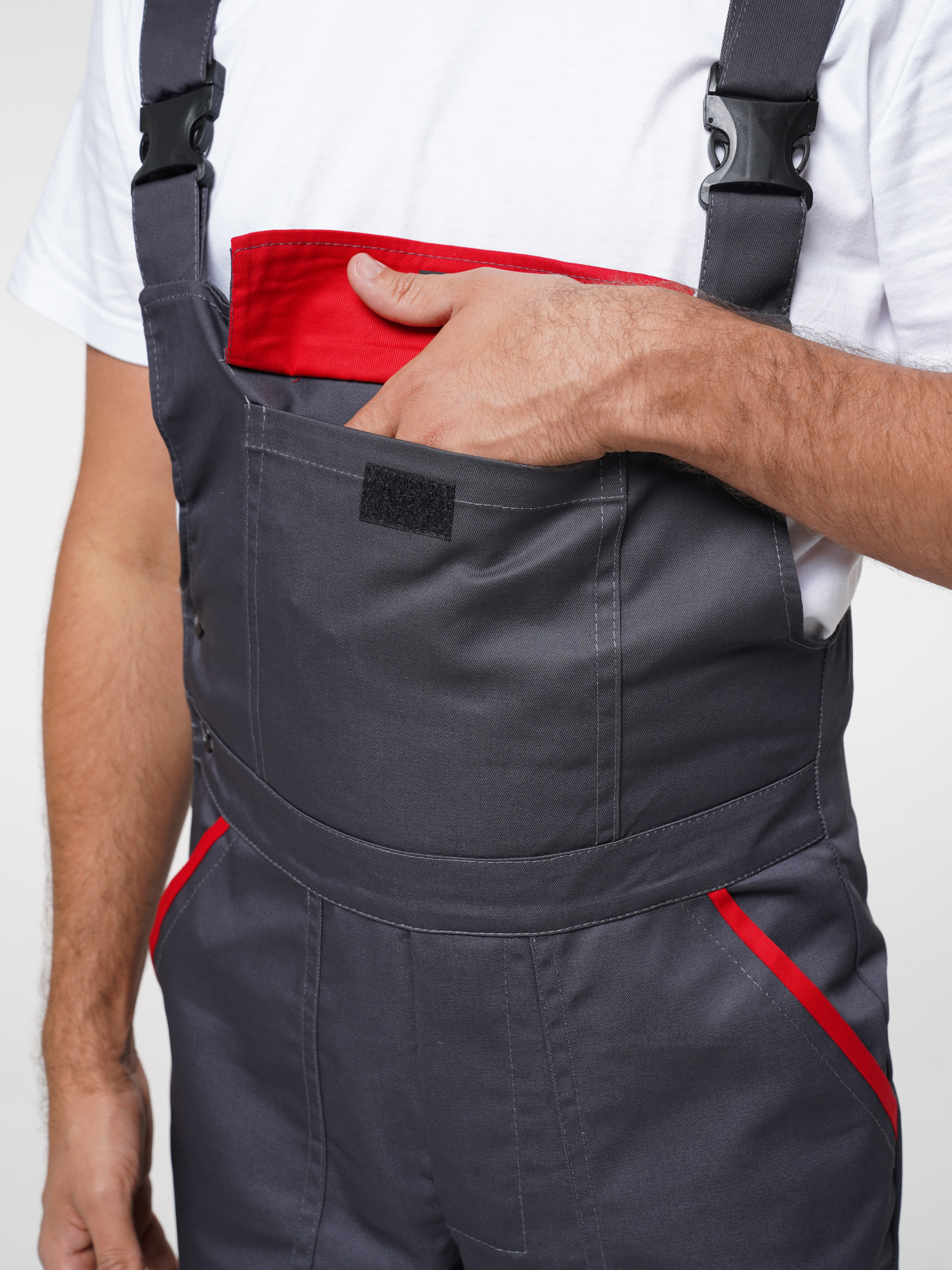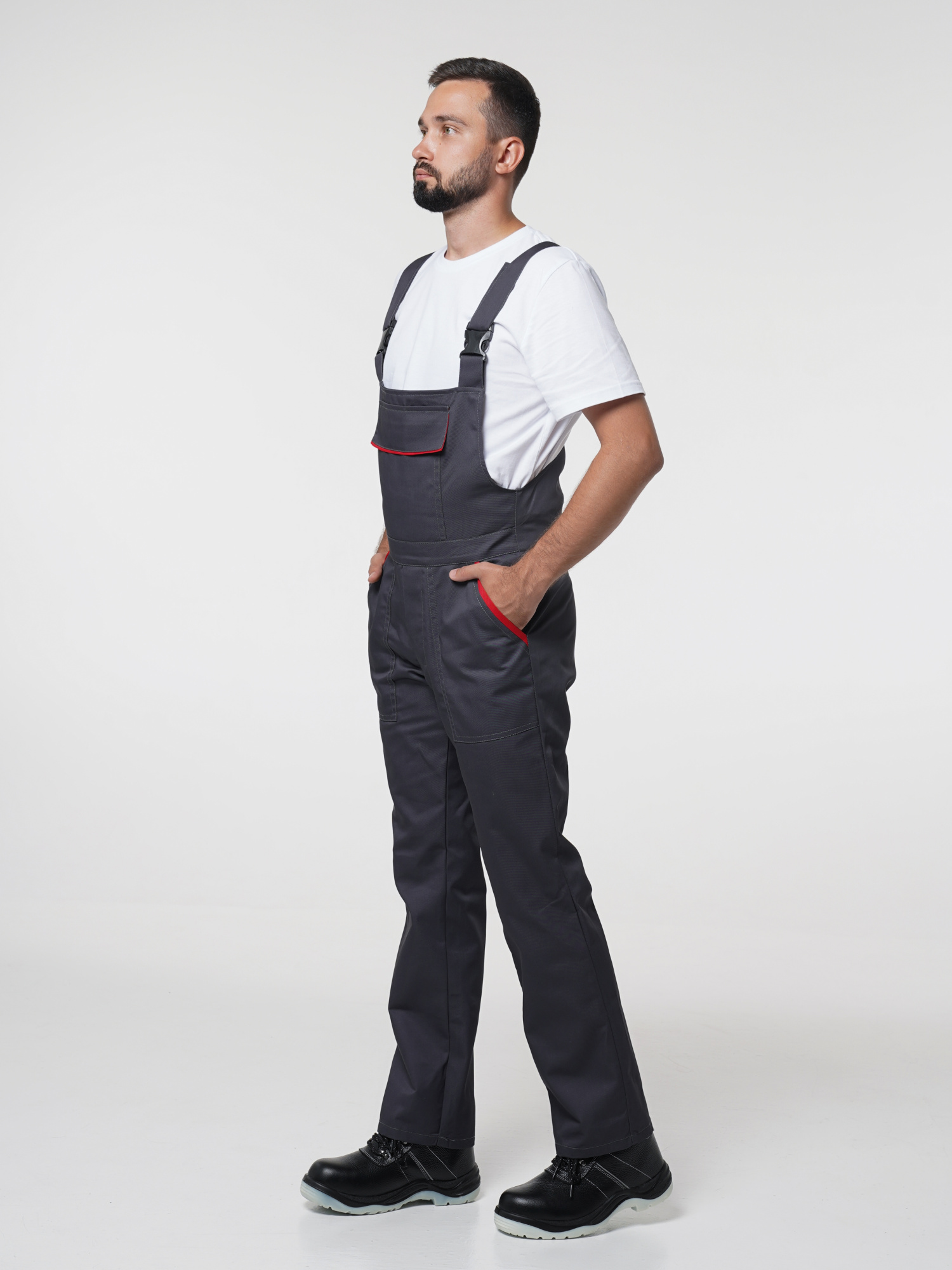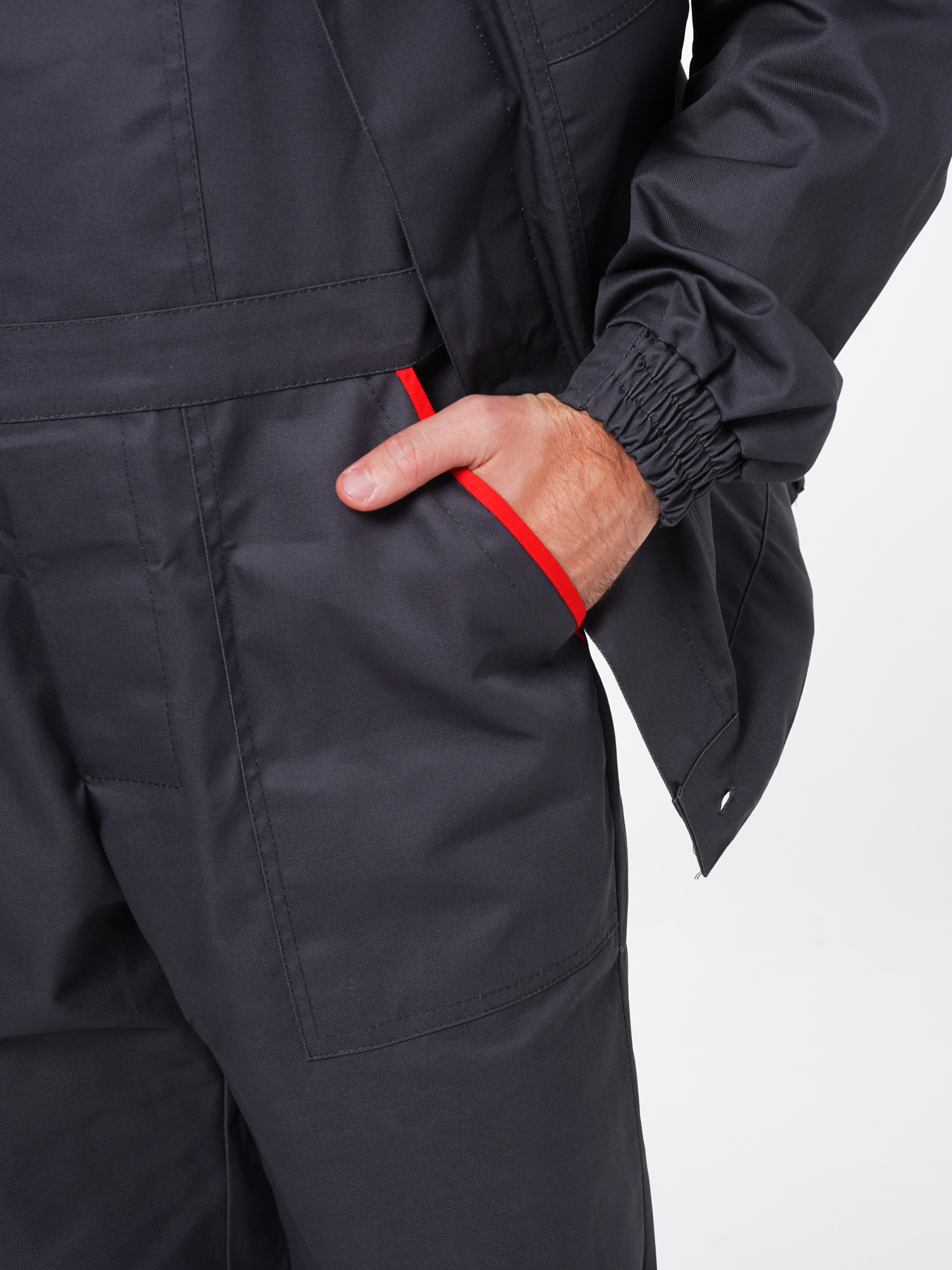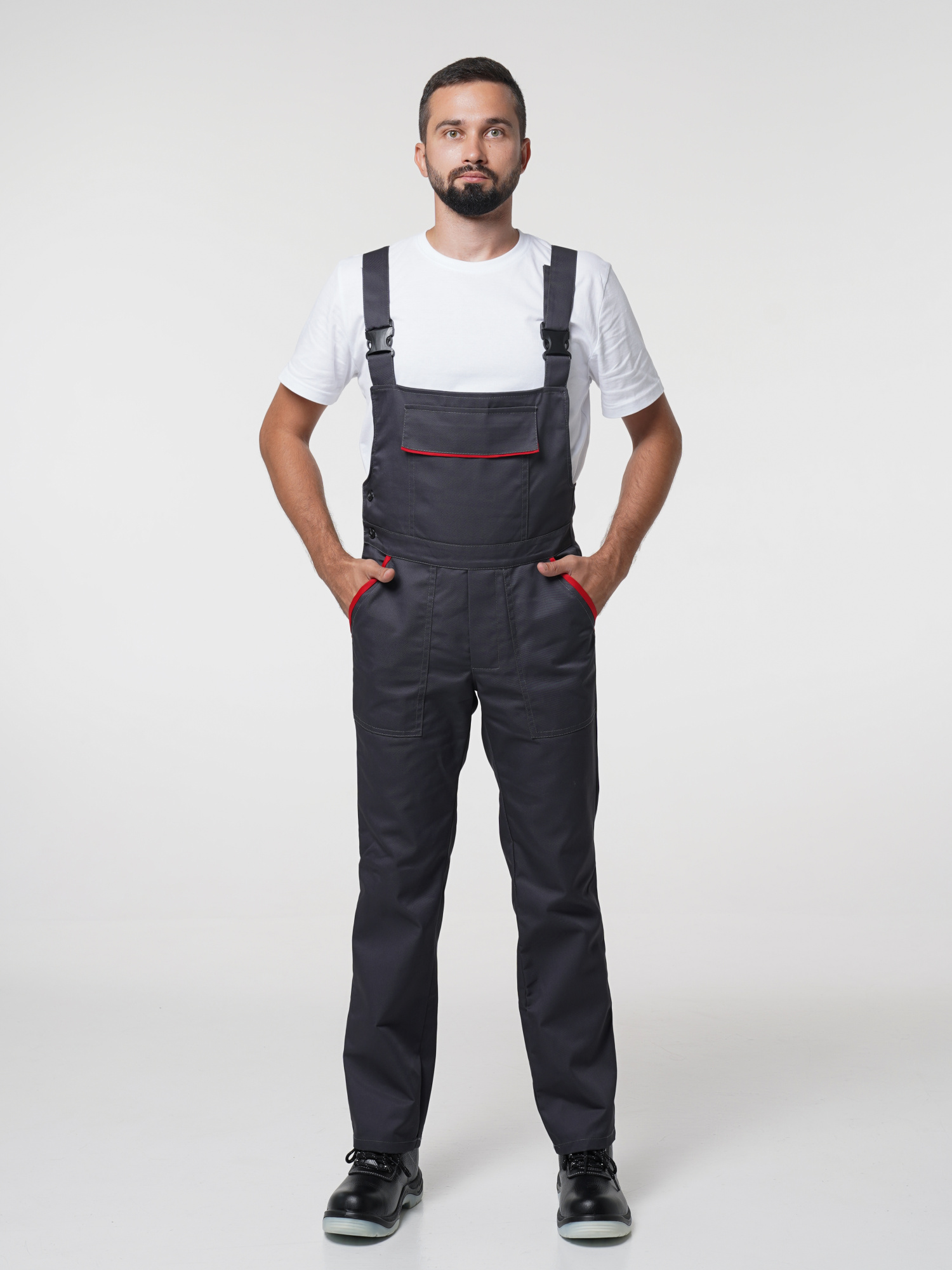 Костюм рабочий Сириус-Мастер №112 т.серый с красным (куртка, полукомбинезон) (ЧЗ) (104-108/182-188)