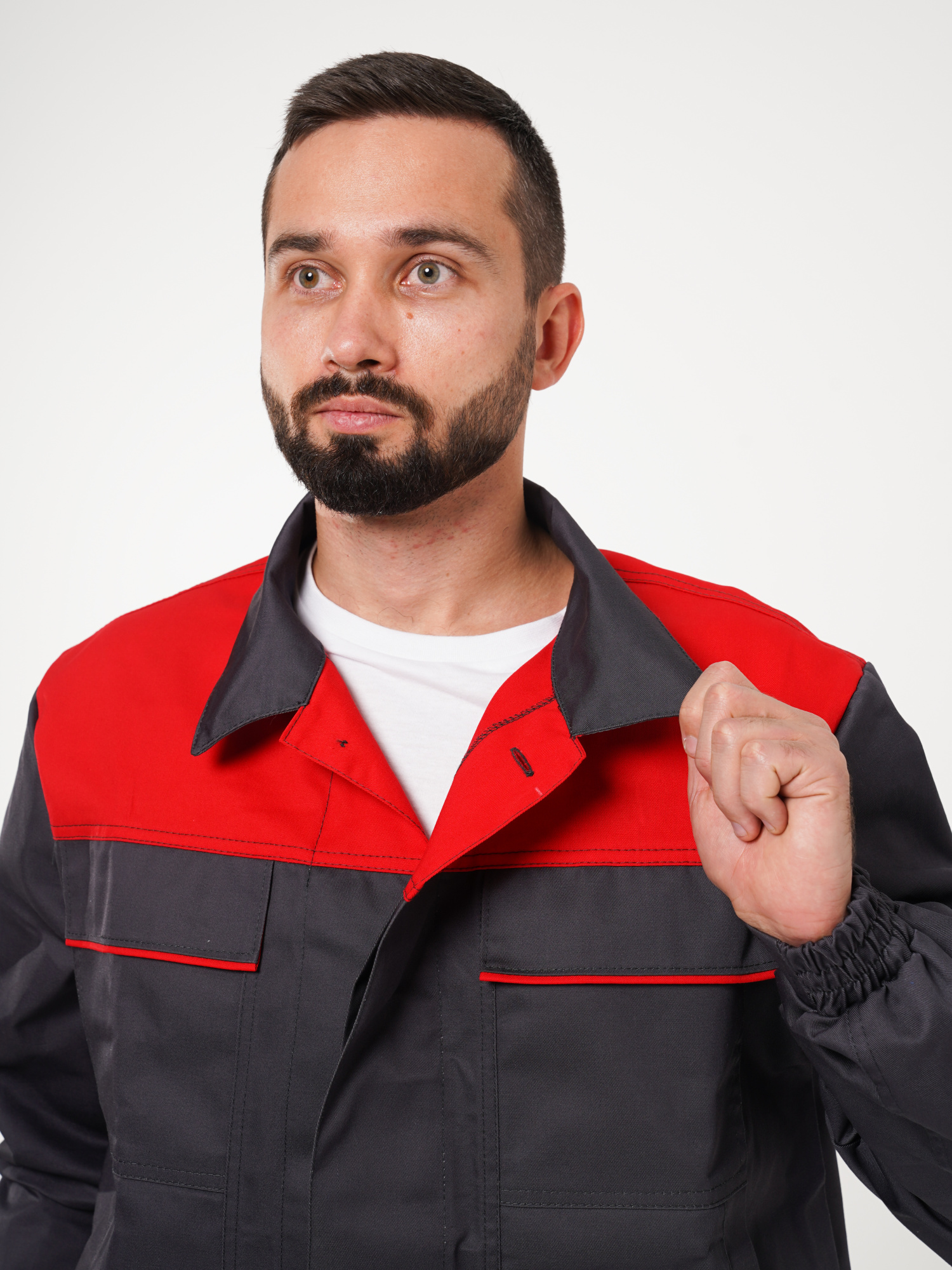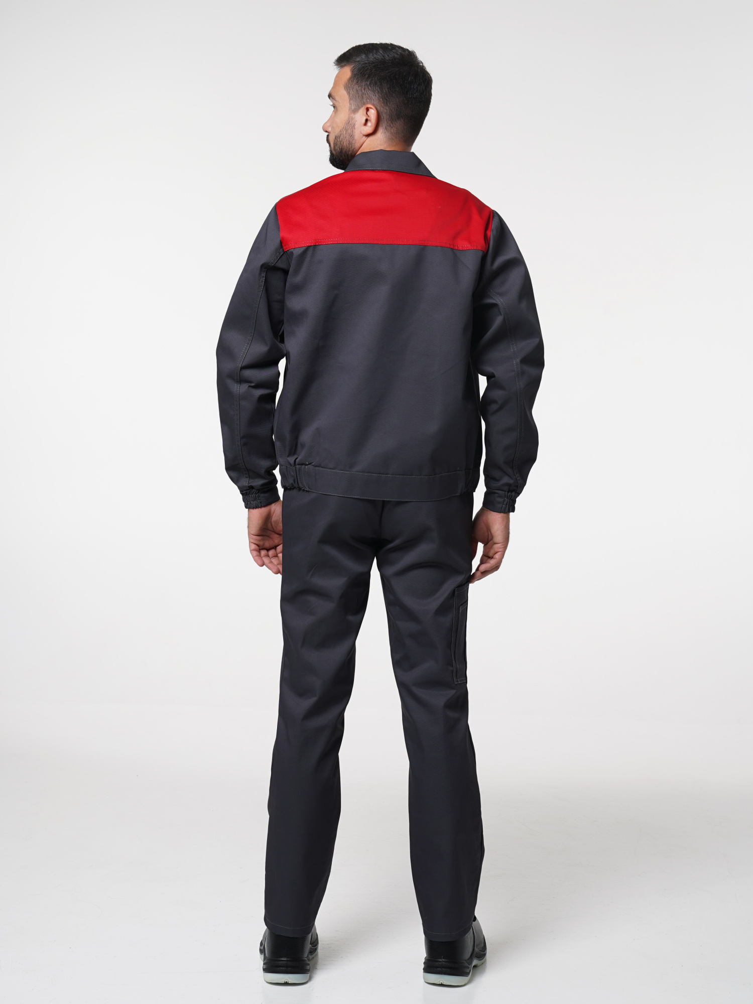 Костюм рабочий Сириус-Мастер №112 т.серый с красным (куртка, полукомбинезон) (ЧЗ) (112-116/182-188)