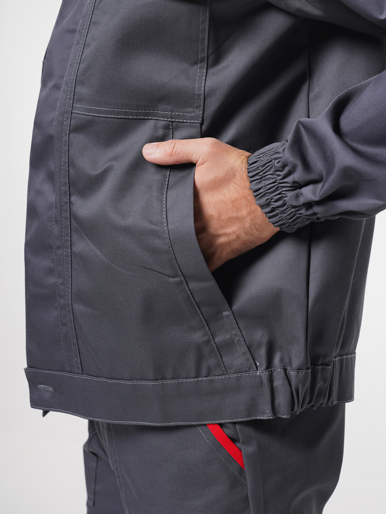 Костюм рабочий Сириус-Мастер №112 т.серый с красным (куртка, полукомбинезон) (ЧЗ) ( 88-92/182-188)