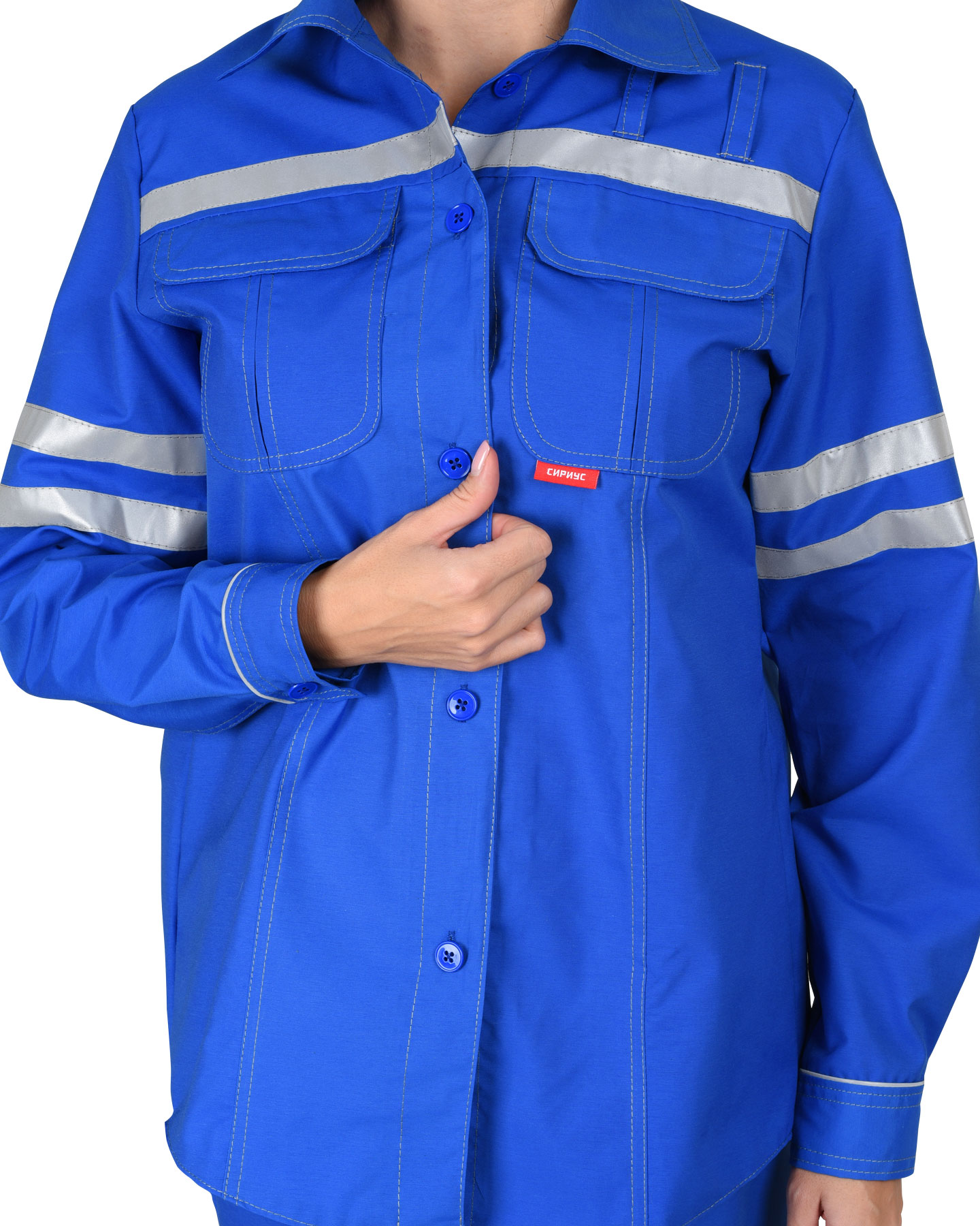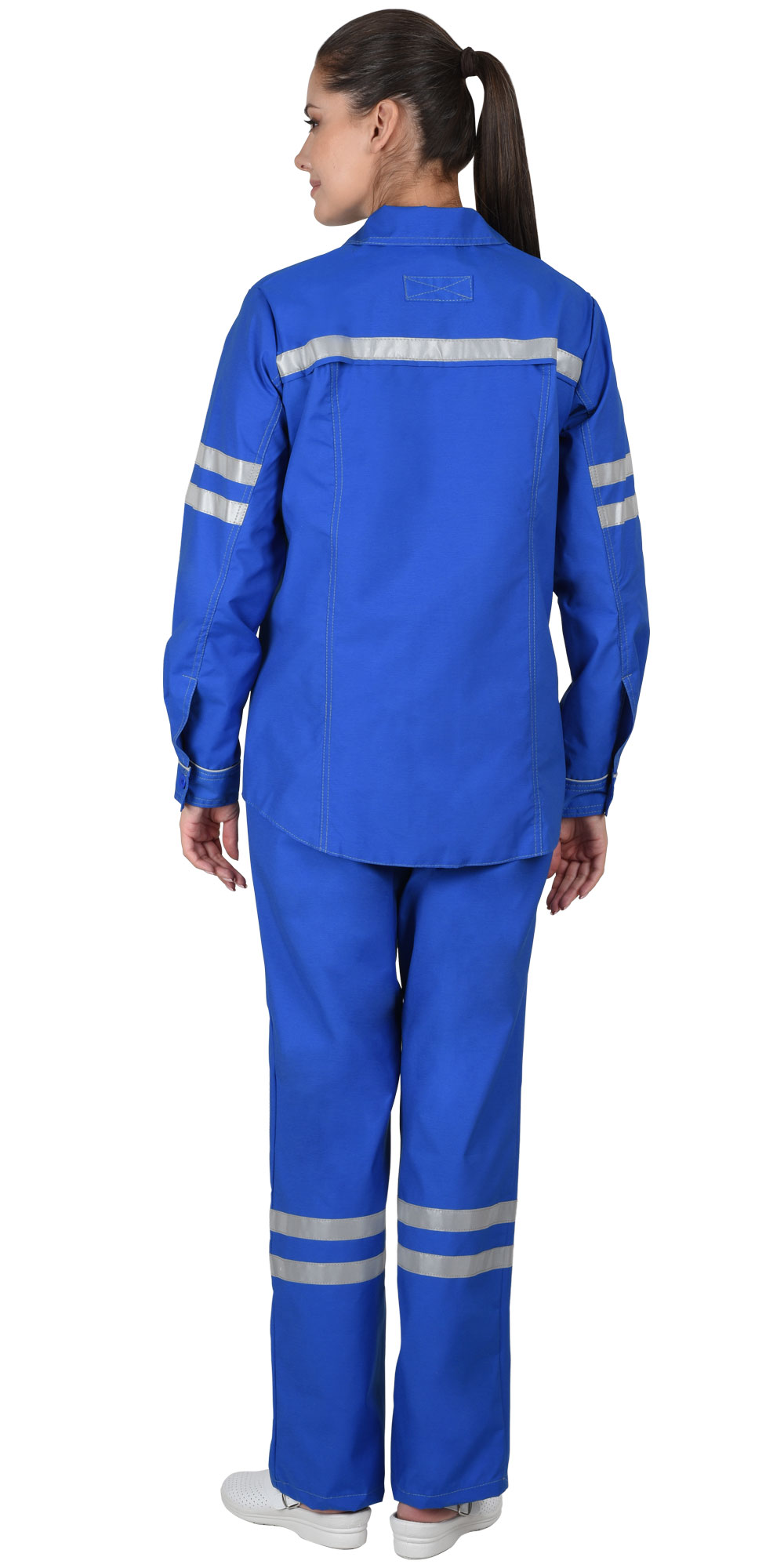 Костюм состоит из куртки и брюк. Куртка прямого силуэта с центральной застёжкой на пуговицы. Карманы с клапанами. Брюки с застёжкой гульфика на "молнию". В костюме предусмотрены светоотражающие полосы 25мм для обозначения сигнальной видимости.