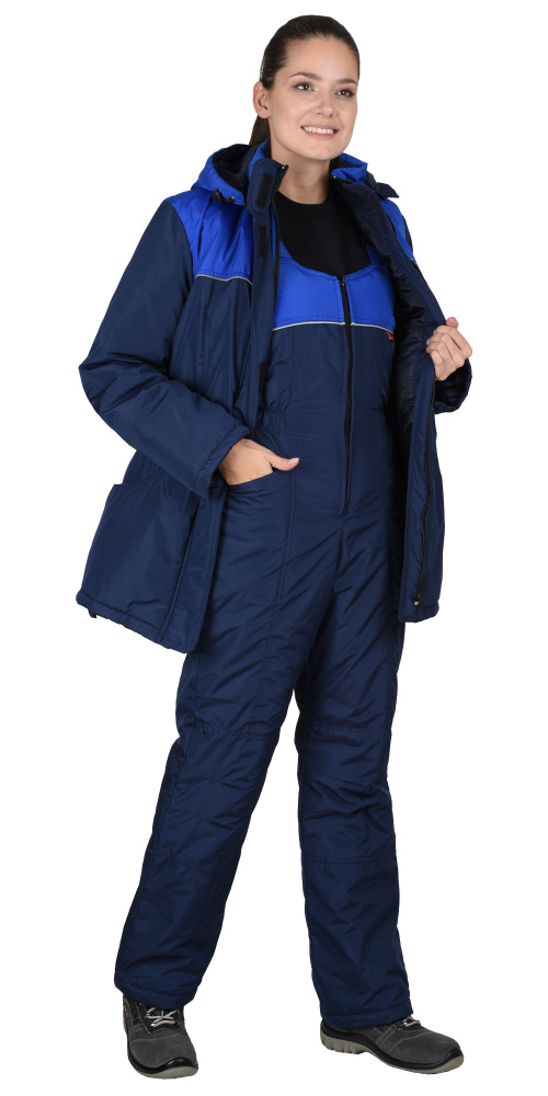 Костюм "Снежана" зимний женский: куртка дл., полукомбинезон синий с васильковым (ЧЗ) ( 80-84/158-164)