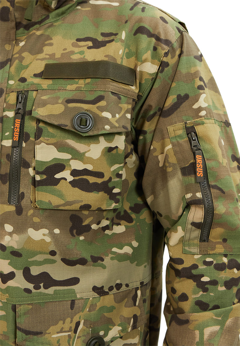 - На левом рукаве расположен накладной карман со входом на молнию