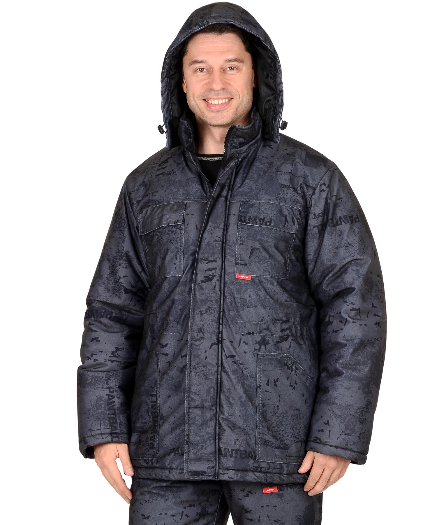 Костюм "Тайга" зимний состоит из удлиненной куртки и брюк.Куртка длинная прямого силуэта, с пристёгивающимся капюшоном, притачной утеплённой подкладкой, воротником стойкой, центральной застёжкой на "молнию", с ветрозащитной планкой, верхними и нижними накладными карманами. Рукава с напульсниками.Брюки прямые с притачной утеплённой подкладкой, притачным широким фигурным поясом, застёгивающимся на две петли и пуговицы, с застёжкой гульфика на молнию, двумя накладными боковыми карманами, с бретелями.