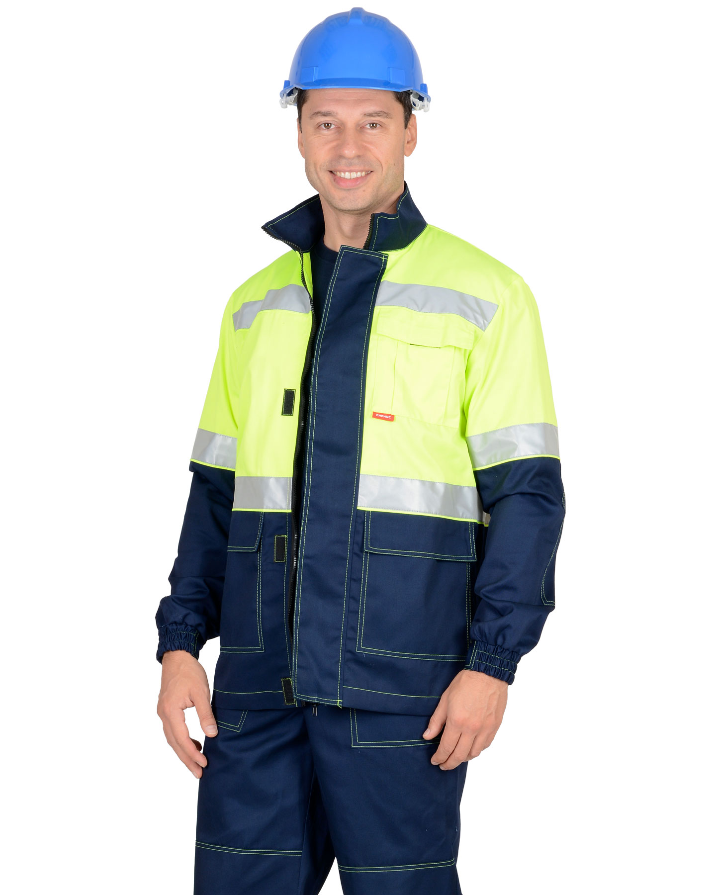 Костюм "Терминал" летн., куртка, п/к. : темно-синий с лимонным (112-116/182-188)