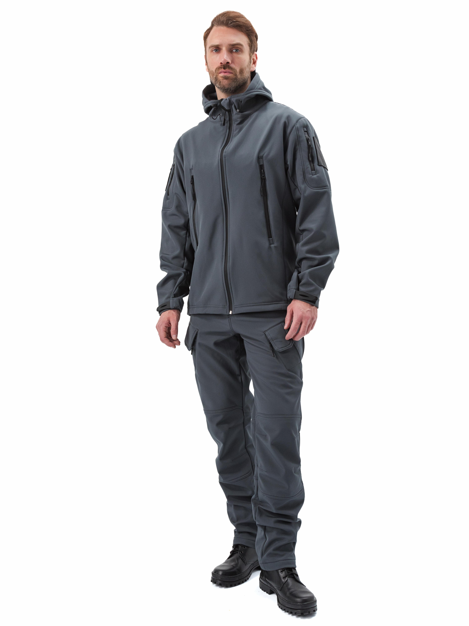 Костюм "ВЕПРЬ" куртка/брюки, цвет: т.серый, ткань: Софтшелл (ЧЗ) (104-108/170-176)