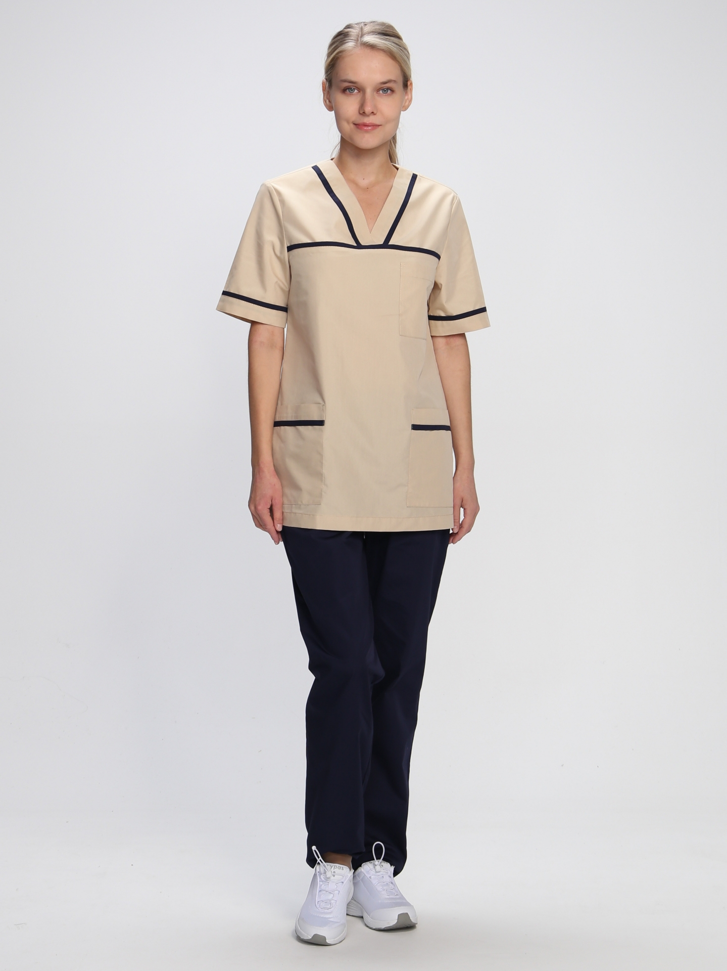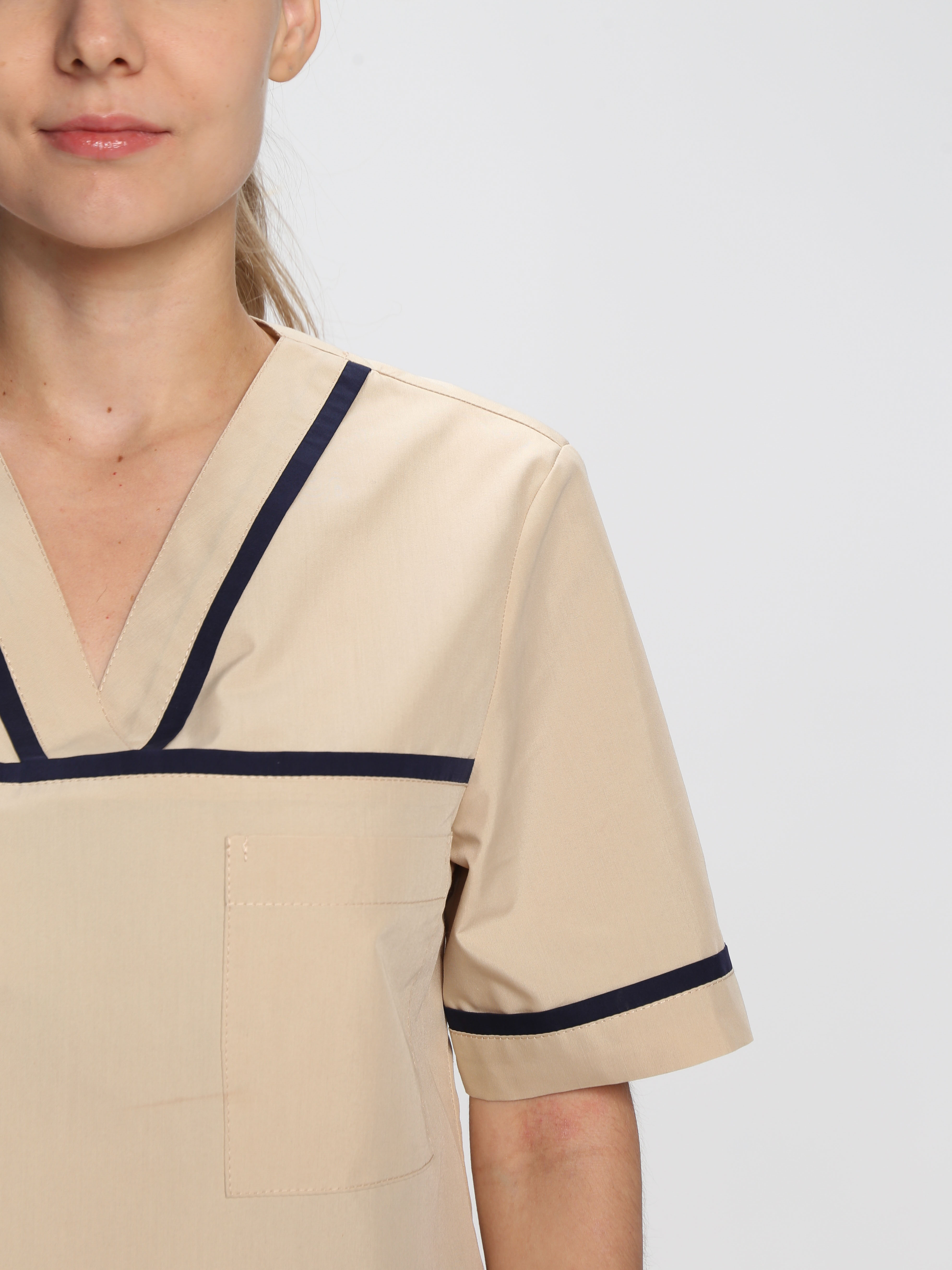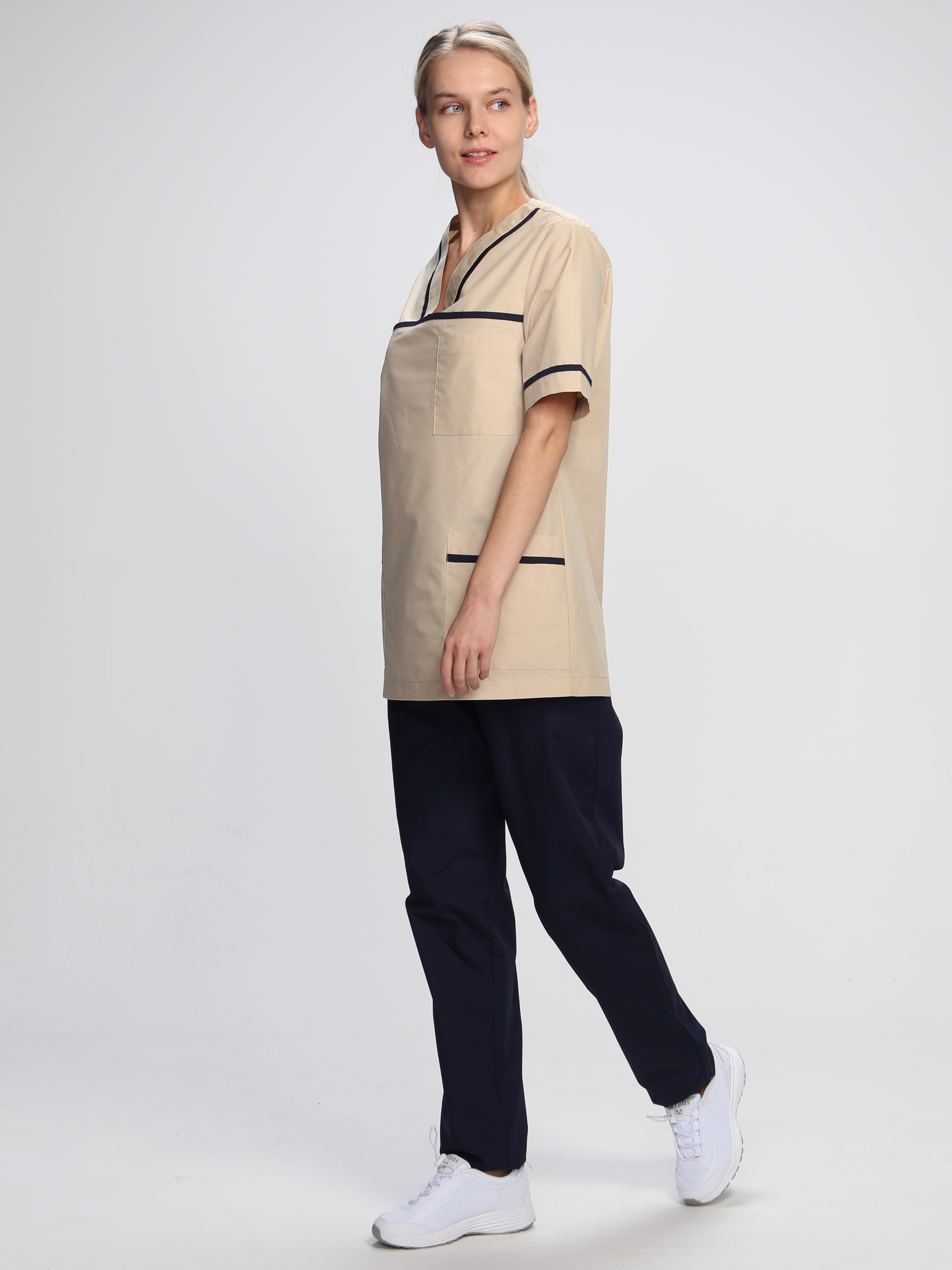 Стильный женский медицинский костюм «Ирис» разработан для сотрудниц медицинских учреждений, салонов красоты, массажных кабинетов или стоматологий. Костюм медицинский женский состоит из двух предметов: блузка + брюки женские. Спецодежда изготовлена в соответствии с ГОСТ, надежно защищает от общих производственных загрязнений. Костюм выполнен в нежных пудровых оттенках, замечательно сидит по фигуре. Прямая удлиненная блуза не стесняет движения, комфортна в работе. Для хранения мелочей предусмотрены вместительные карманы: боковые и нагрудный. Декоративный кант на карманах, горловине и кокетке придает костюму изысканный внешний вид. Рабочие брюки оснащены поясом из эластичной тесьмы для комфортной работы в течение длительного периода времени. Костюм изготовлен из легкой дышащей ткани, которая не выцветает и не садится после многократных стирок.
