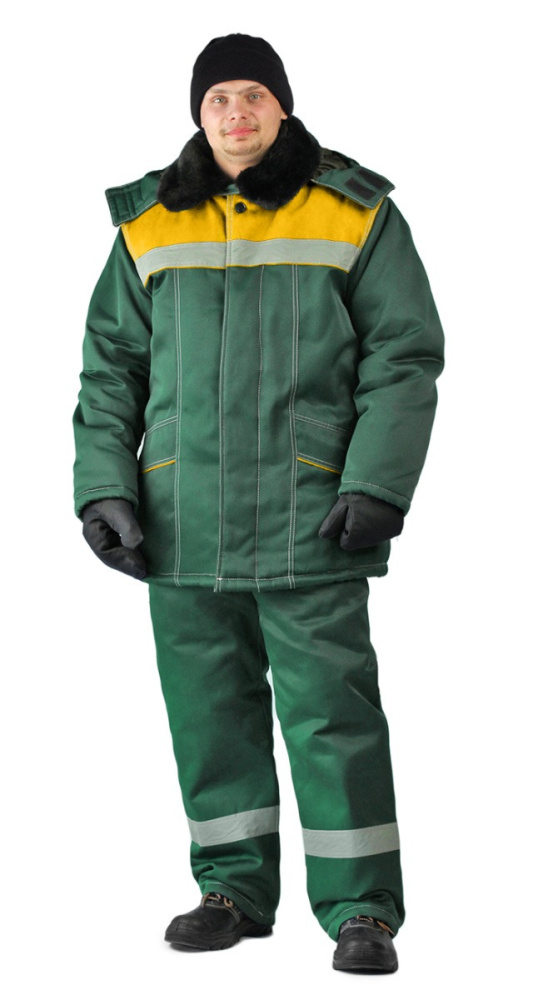 Костюм зимний "ВЬЮГА" куртка/полукомб. цвет: т.зелёный/жёлтый URSUS (ЧЗ) (104-108/182-188)