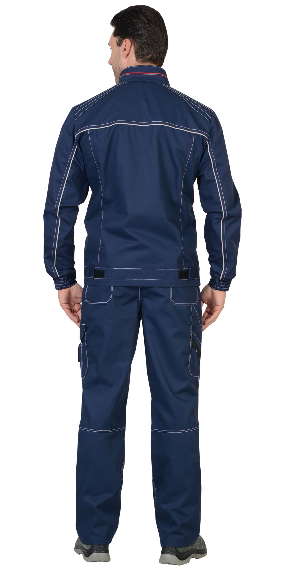 Куртка короткая, воротник стойка; с центральной застежкой на тесьму "молнию"; с внутренней подпланкой; с верхним прорезным карманом на тесьму "молнию" на левой полочке, и с верхним накладным полуобъемным карманом с фигурным клапаном застегивающийся на потайную липучку на правой полочке; с нижними прорезными карманами "листочки", притачной обтачкой низа куртки и манжетами, манжеты частично стянуты резинкой. В куртку предусмотрен СВ кант для обозначения сигнальной видимости