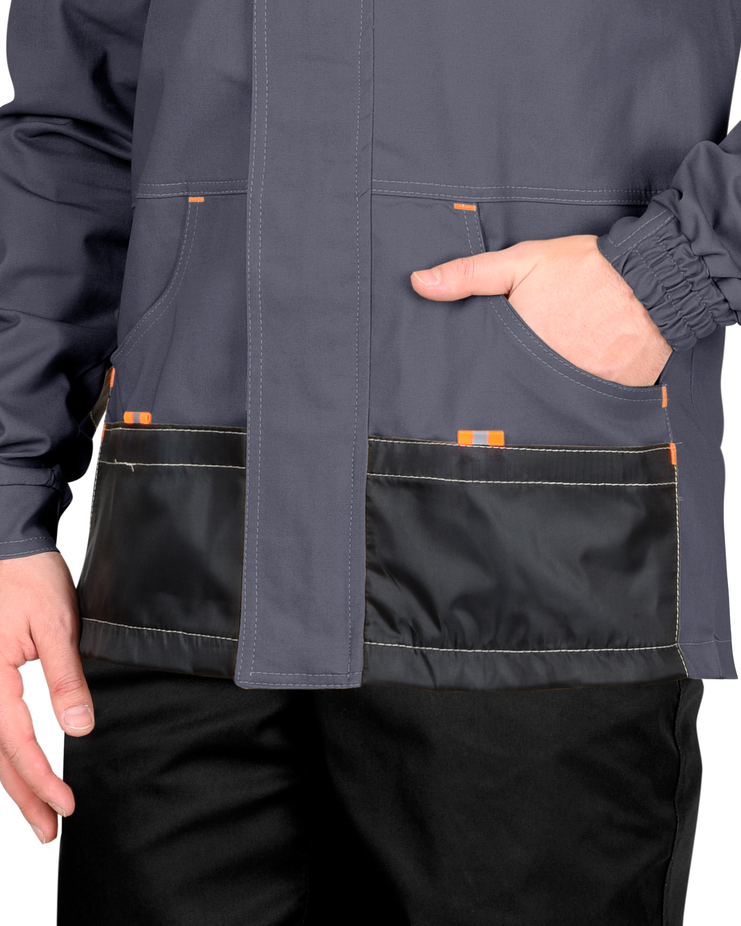 Куртка "МАНХЕТТЕН" длинная темно-серая с оранжевым и черным (ЧЗ)