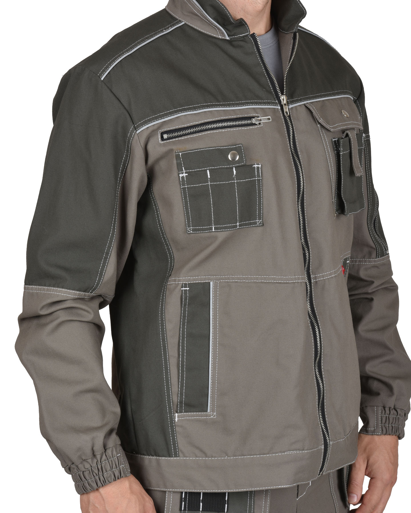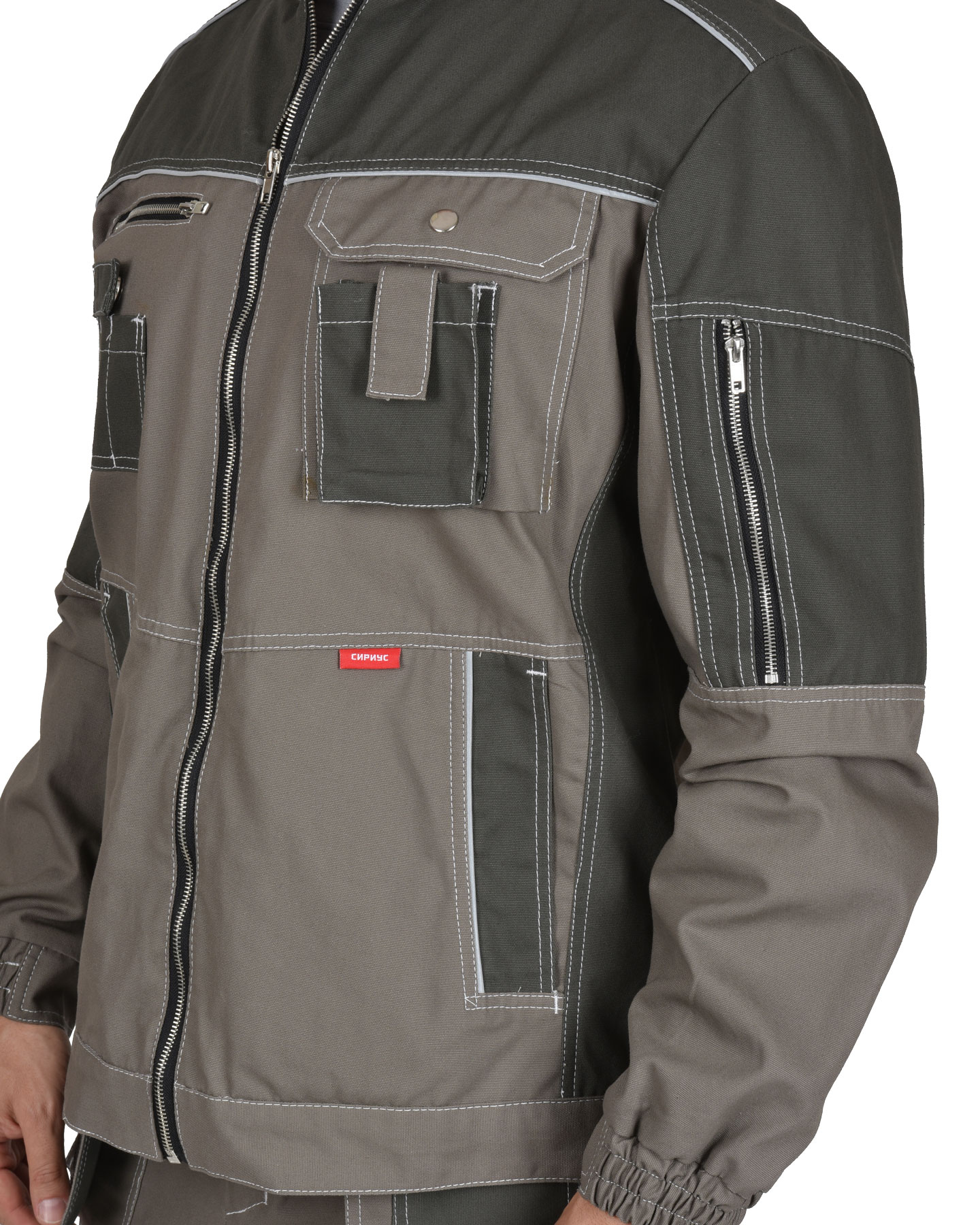 Ткань верха: «Родос» смесовая с ВО пропиткой. В куртке предусмотрен фигурный СОП для обозначения сигнальной видимости.