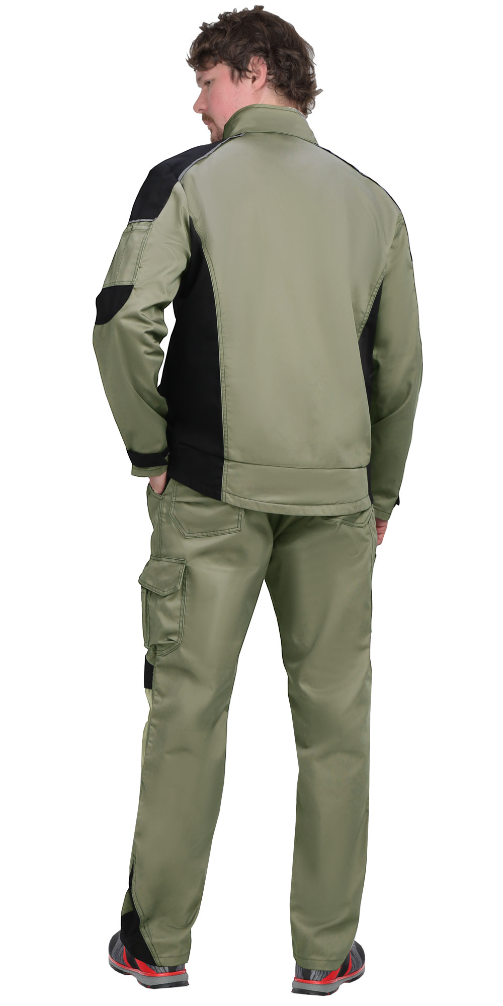 Куртка двухцветная, прямого силуэта, укороченная, с воротником стойка, с центральной застёжкой на молнию от края воротника до низа, накрытую ветрозащитной планкой и внутренней короткой планкой по правому борту, с нагрудными карманами с молнией, с нижними карманами в шве. Рукава втачные, объём по низу рукава регулируется хлястиком с текстильной застёжкой «липучка». В куртке предусмотрен СВ кант.