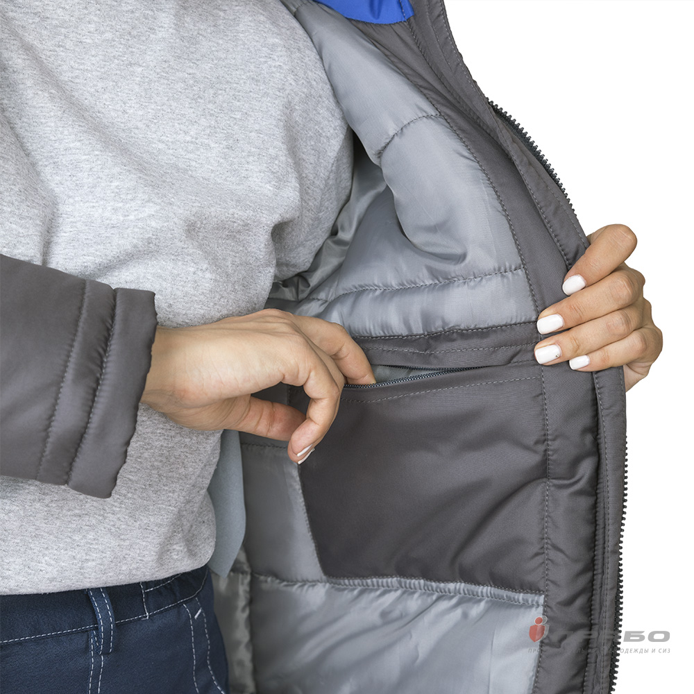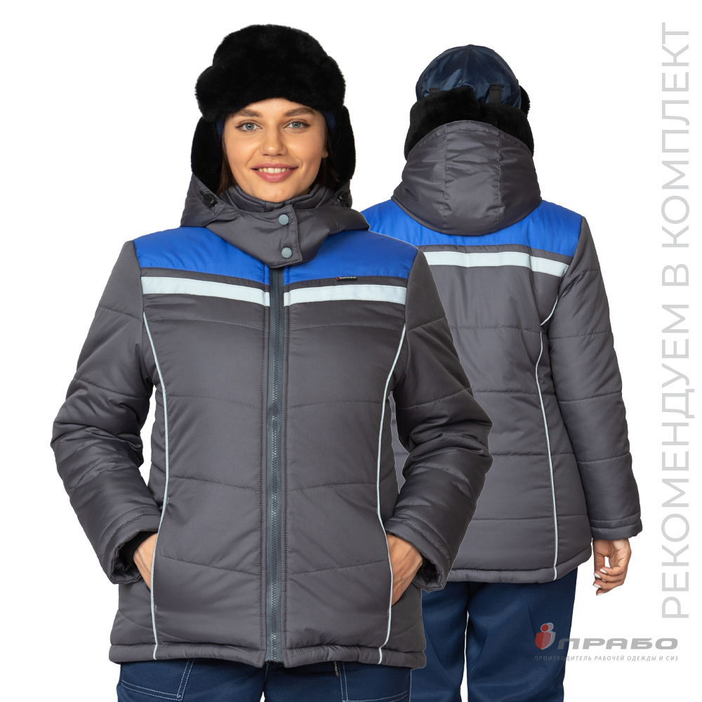 Куртка женская утеплённая "Онега-М" с трехслойным утеплителем тёмно-серая/электрик (ЧЗ) ПРАБО ( 80-84/170-176)