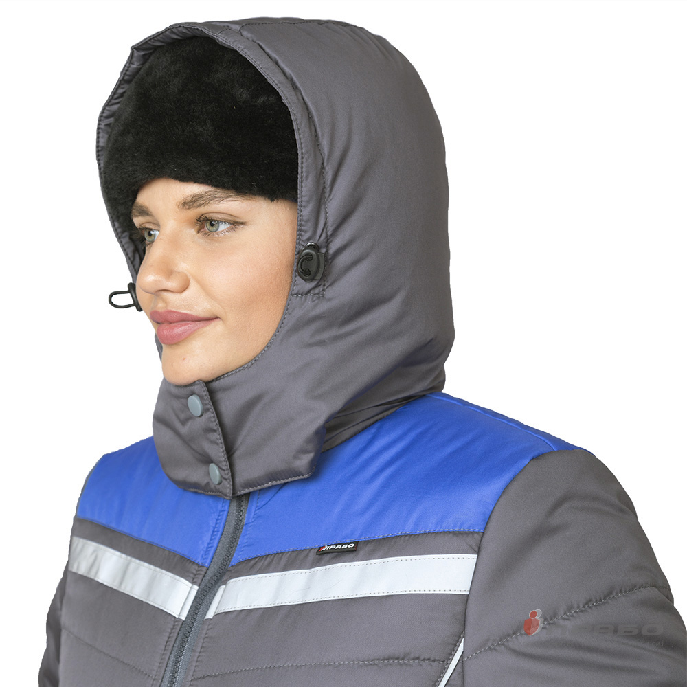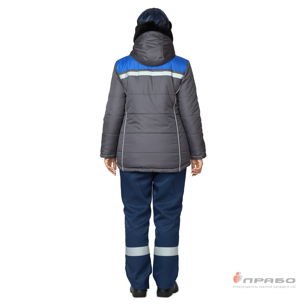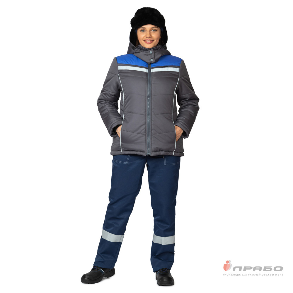 Куртка женская утеплённая "Онега-М" с трехслойным утеплителем тёмно-серая/электрик (ЧЗ) ПРАБО (120-124/170-176)