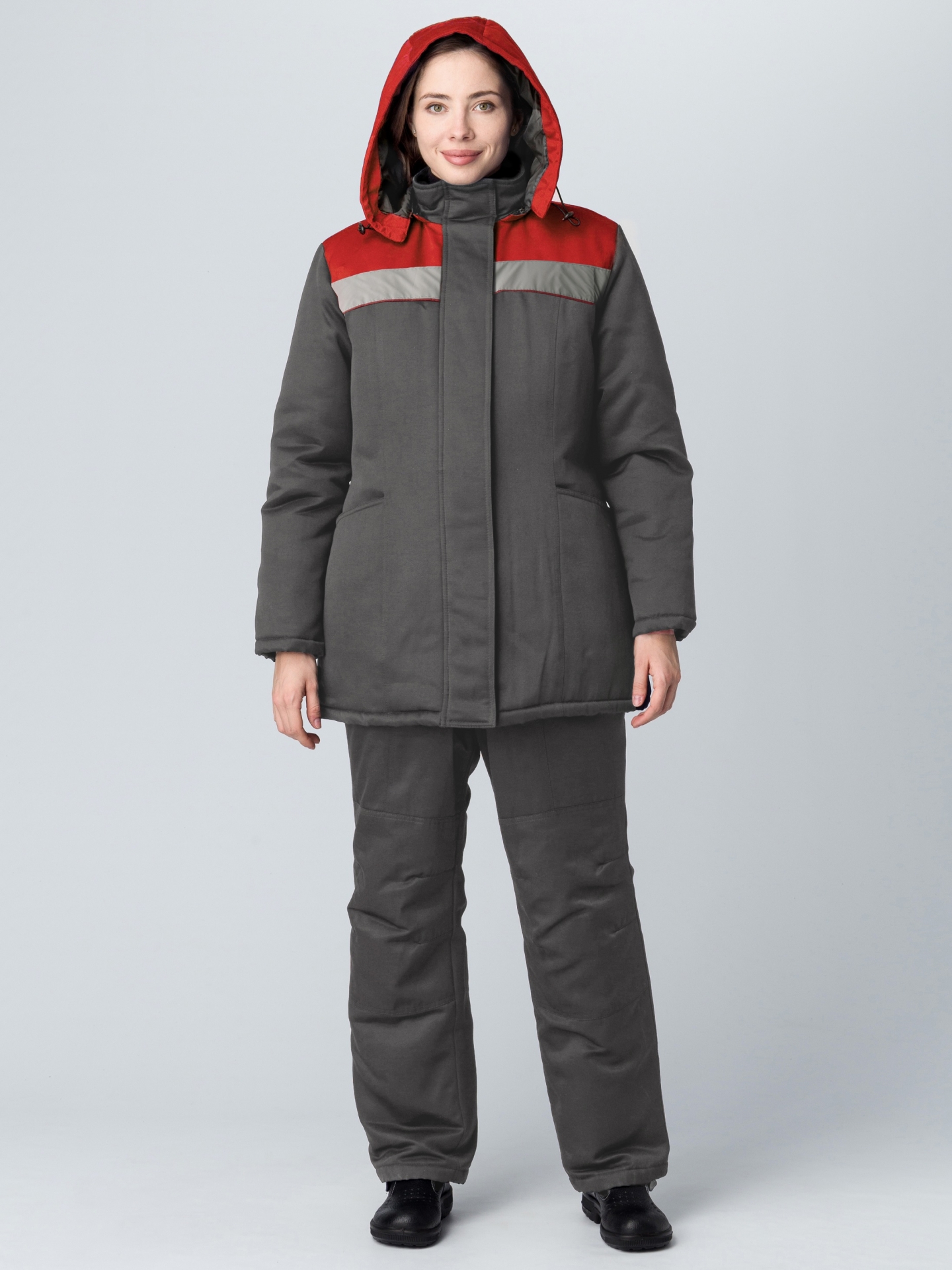 Куртка зимняя женская Вьюга (Кнейд) СОП (тк.Смесовая,210), т.серый/красный (ЧЗ) (112-116/182-188)