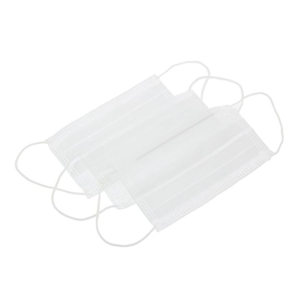 Маска одноразовая трехслойная, с носовым фиксатором, на резинках "Евровариант". Изготовлена из нетканого материала: спанбонд.