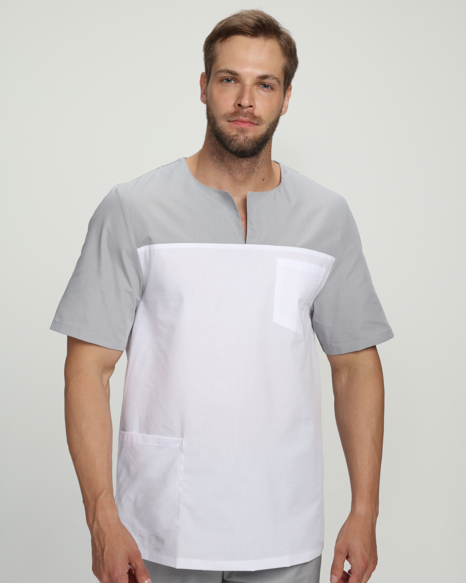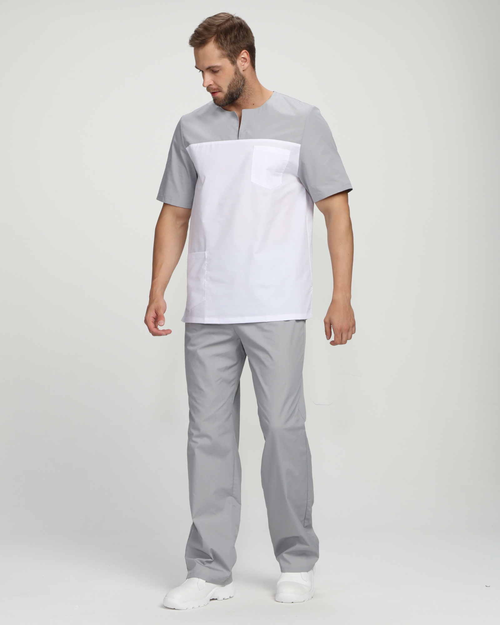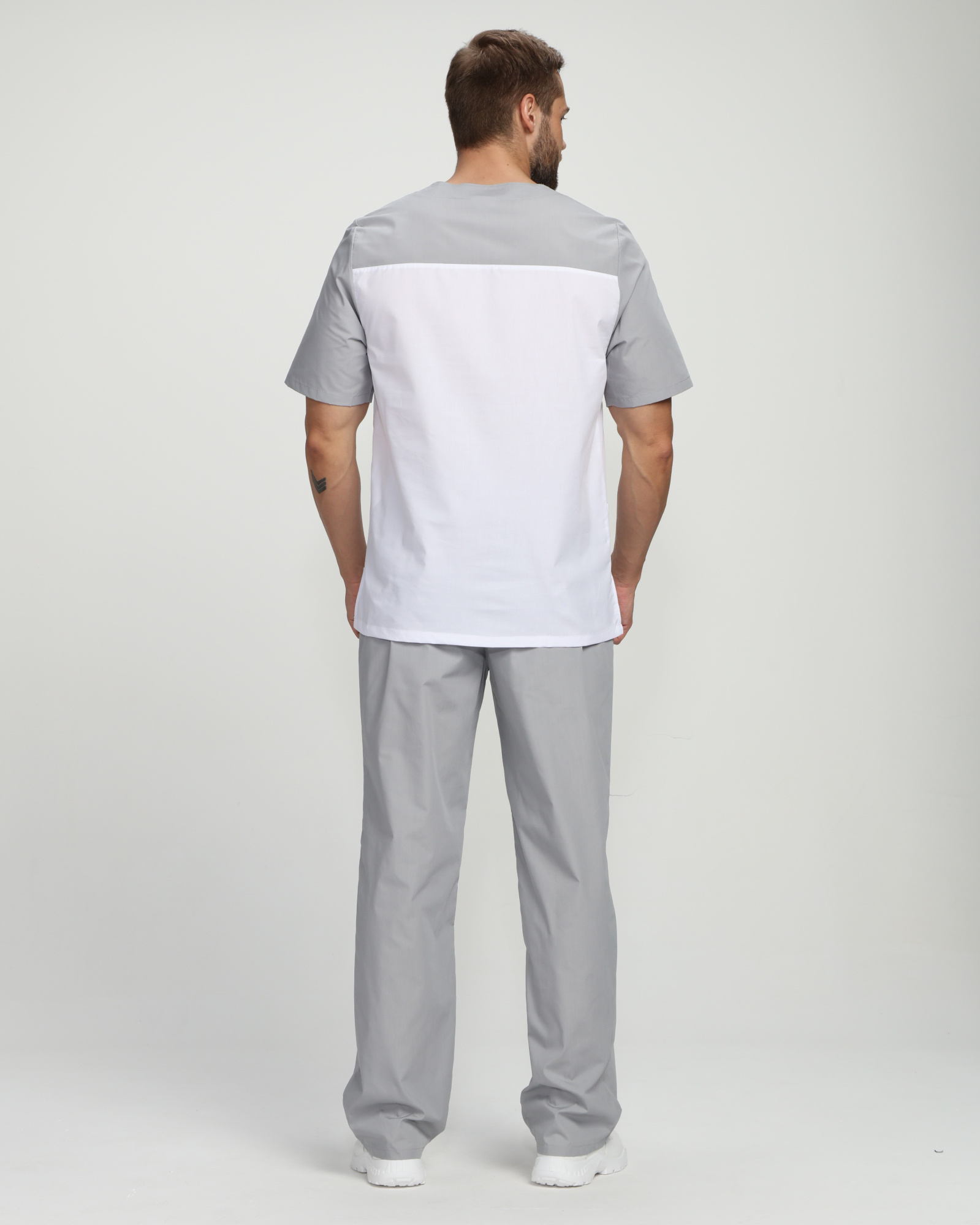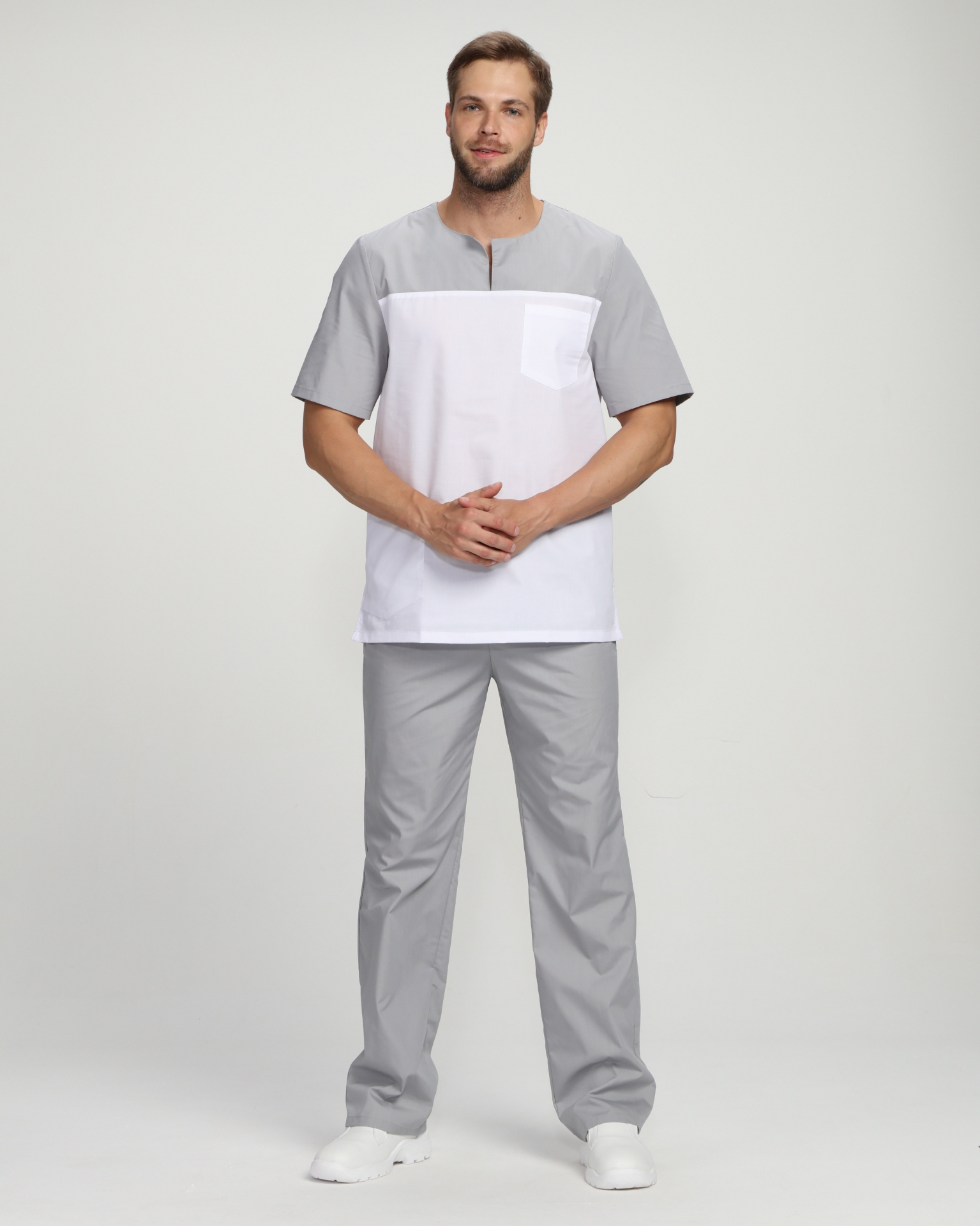 Мужской костюм Стоматолог (ткань ТиСи), серый/белый ( 88-92/170-176)