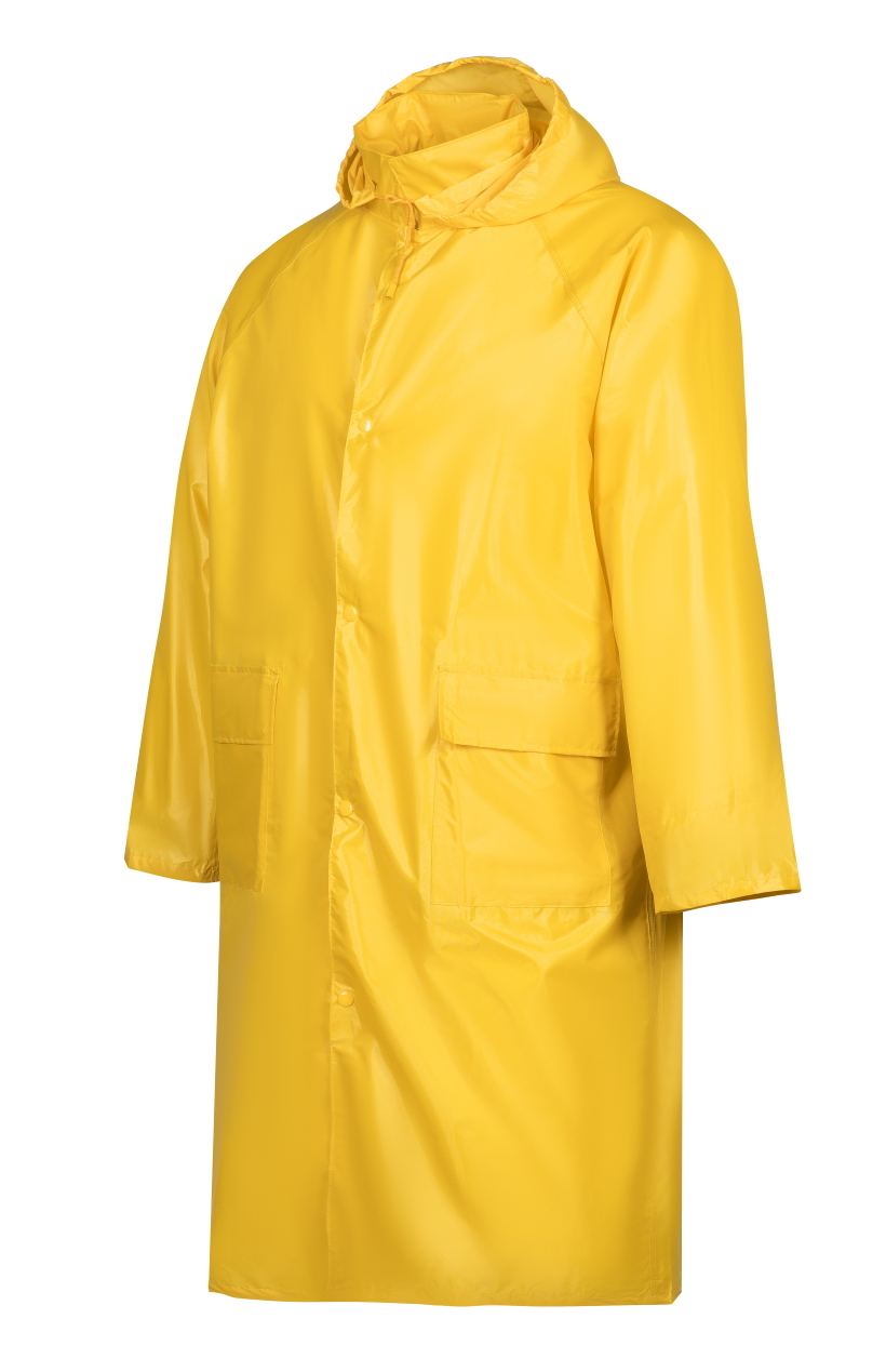 Влагозащитный плащ для защиты от атмосферных воздействий: дождя, ветра, пыли. Плащ с капюшоном (прячется в воротник на молнии), вентиляционными отверстиями под рукавами и по спинке (с сеткой), двумя карманами под клапанами, застежка на двойной ряд кнопок + двойная планка, муфты в рукавах, поставляется в индивидуальной многоразовой упаковке. Используемая конструкция застежки является наиболее надежной для плаща, так как при значительной длине  застежки присутствует риск преждевременной поломки застежки-молнии, а при поломке одной или нескольких кнопок, изделие можно продолжать использовать. Плащ поставляется в индивидуальной многоразовой упаковке. Материал - ПВХ усиленный полиэстером (полиэстеровыми волокнами- нитями) с толщиной листа -0,18 мм, все соединения проклеены ПВХ лентой, цвета темно-синий. Рекомендуется для использования поверх верхней одежды в дождливую погоду во всех отраслях промышленности, на транспорте и сельском хозяйстве  Размеры "европейские", соответствуют стандартам РФ: M, L, XL, 2XL,3XL, 4XL