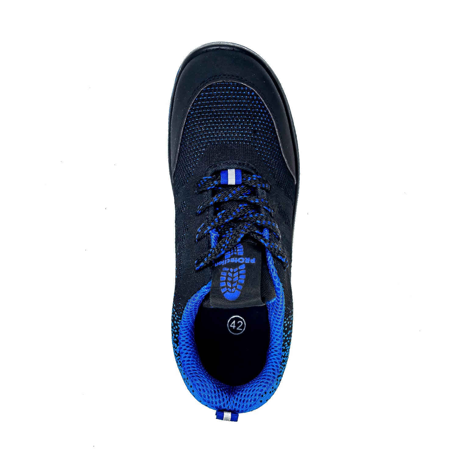 Рабочие кроссовки с композитным подноском с ударной нагрузкой до 200 Дж. Лёгкие и комфортные при носке кроссовки изготовлены по технологии Flyknit - компьтерная вязка комбинированной нитью из полиэфирной пряжи, микрофибры и терилена. Терилен пропускает воздух и позволяет ноге дышать, обладает термической и износостойкостью, водозащитными свойствами, антибактериальным эффектом,отлично сохраняет форму. Подкладка из дышащей трехслойной 3D AirMesh ткани синего цвета. Двойная ПУ/ПУ подошва изготовлена литьевым методом, устойчива к воздействию кислотно-щелочных веществ (до 20%), масло-бензольных соединений и нефтепродуктов. Рабочая температура эксплуатации кроссовок от -35°С до +85°С. Глухой клапан предотвращает попадание нетоксичной пыли, влаги и грязи внутрь. Анатомическая стелька из ЭВА обеспечивает комфорт носки и снижает нагрузку на суставы ног.
