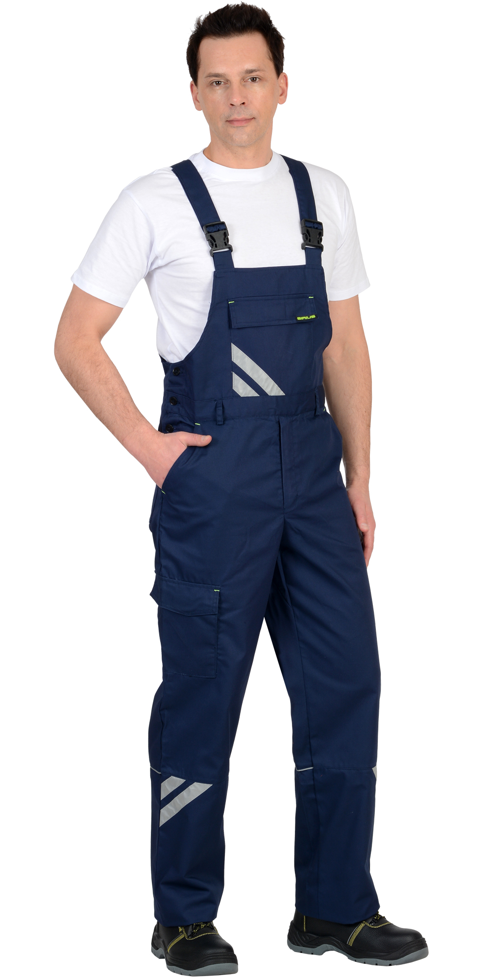 Полукомбинезон застежкой гульфика на тесьму - "молния" с боковой застежкой на пуговицы, с различными функциональными карманами, с элементами из СВ кант и СОП, обеспечивающие безопасность