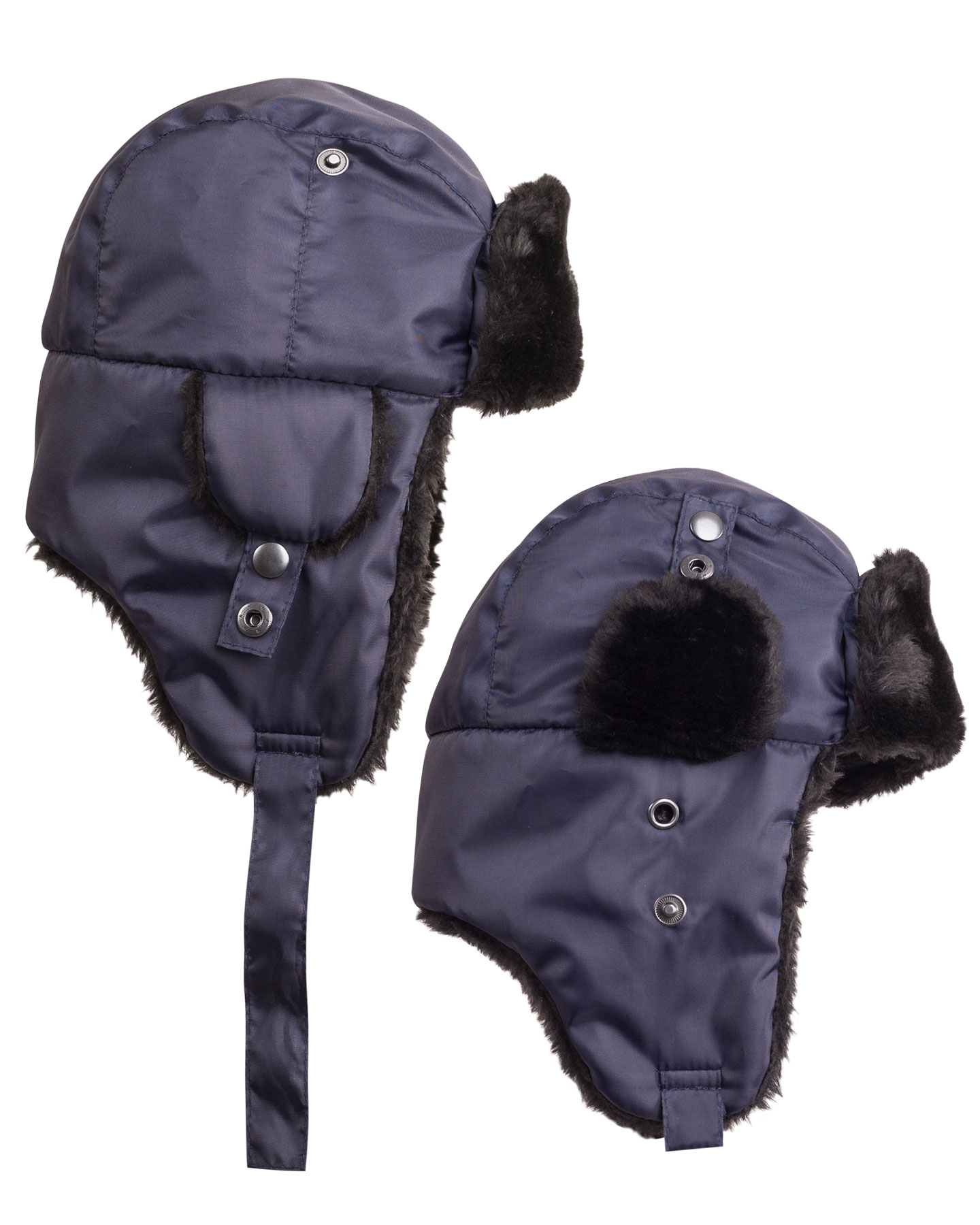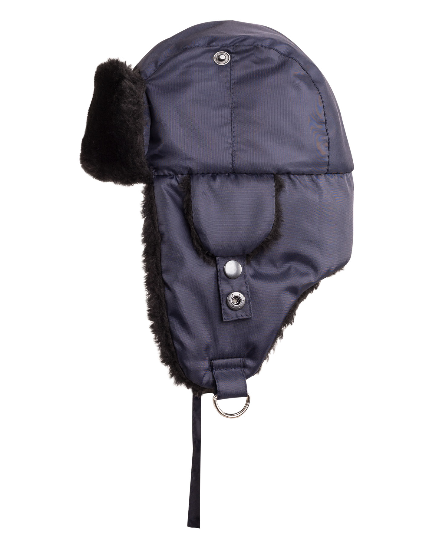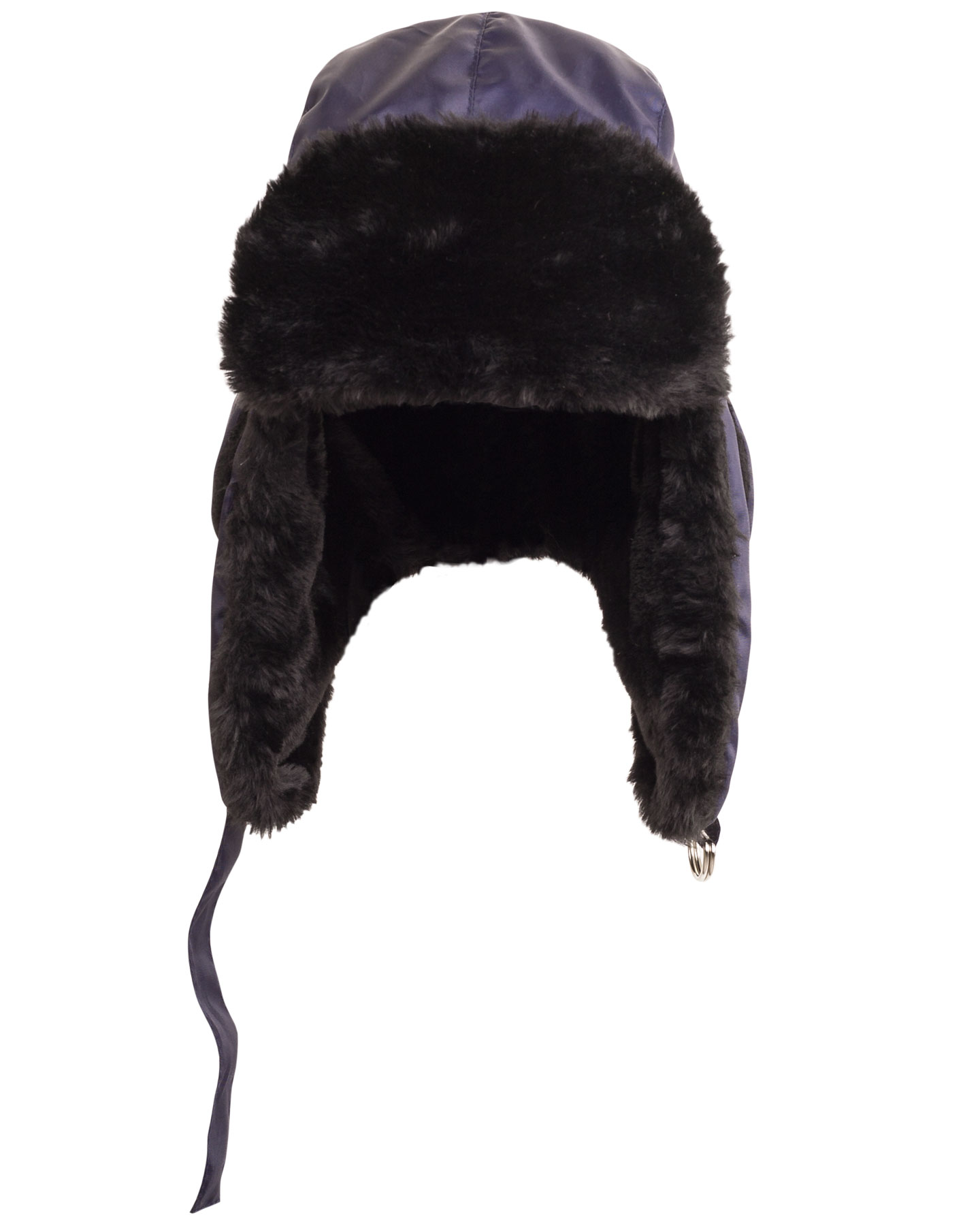 Шапка-ушанка зимняя т. синяя со слуховыми отверстиями, защищенные меховым клапаном.