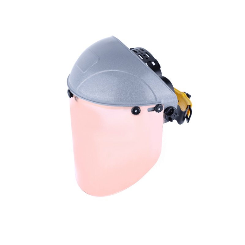 Для работ у доменных, сталеплавильных и других промышленных печей, для защиты от слепящей яркости видимого света, ИК-излучений и высокой температуры. Непрогораемый серебристый козырек из материала SUPER Termotrek. Экран из ударопрочного и термостойкого поликарбоната со светоотражающим покрытием из золота. Защита от высокоскоростных летящих частиц с высокоэнергетическим ударом (190 м/с). Наголовное крепление RAPID с обтюратором из натуральной кожи.