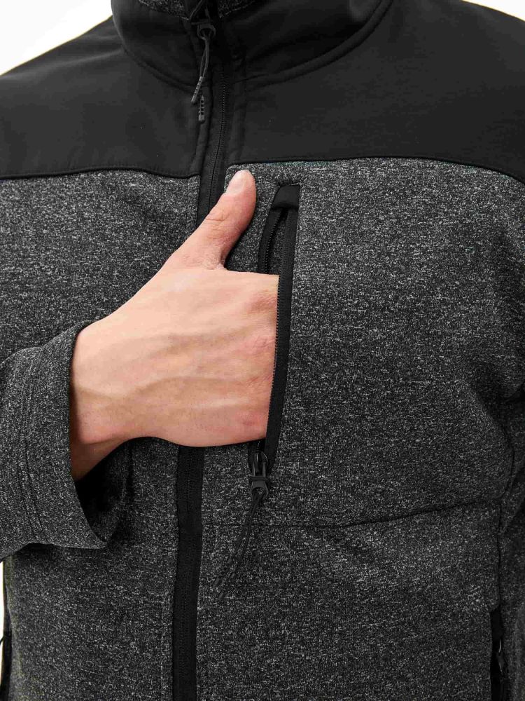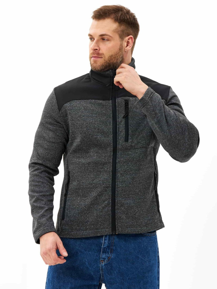 Толстовка (куртка Н23011) цвет: серый/черный, ткань: Софтшел (ЧЗ) (M)