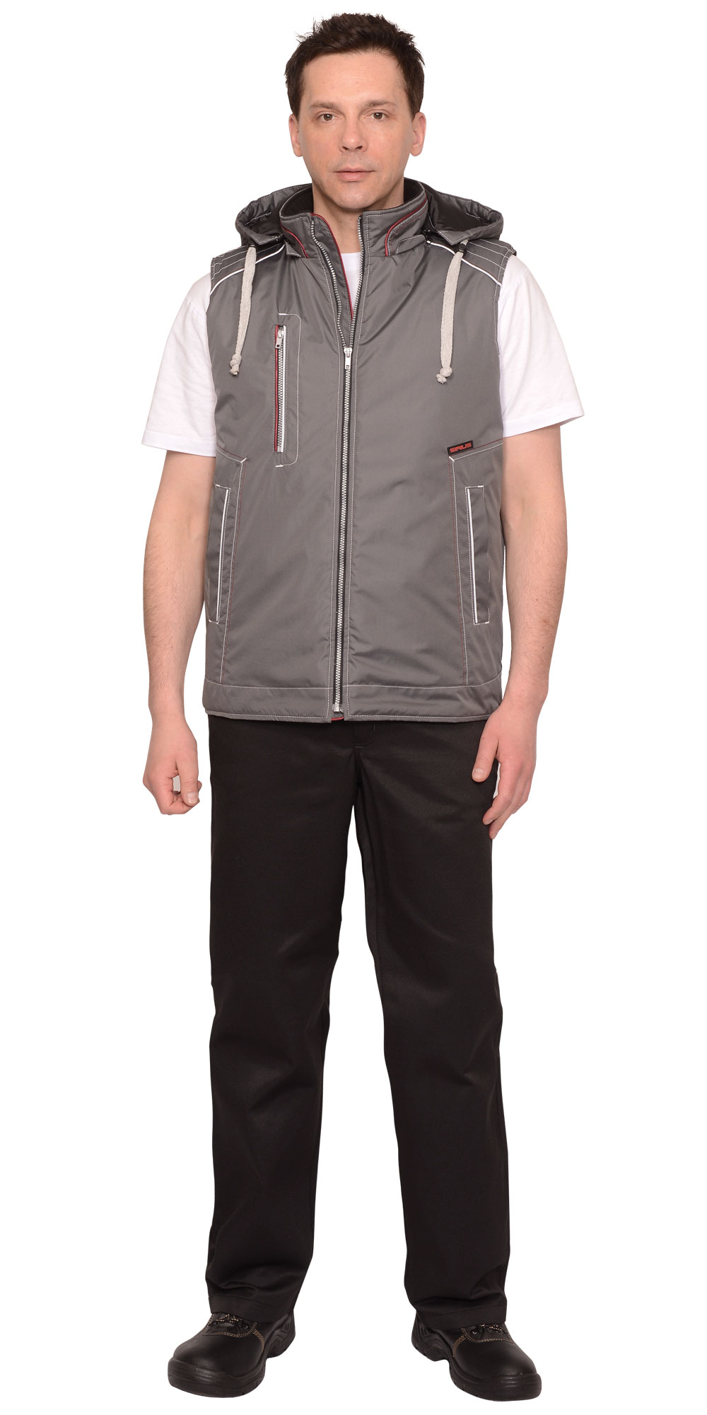 Жилет "АЛЕКС" (на подкладке тафетта) с капюшоном темно-серый (ЧЗ)