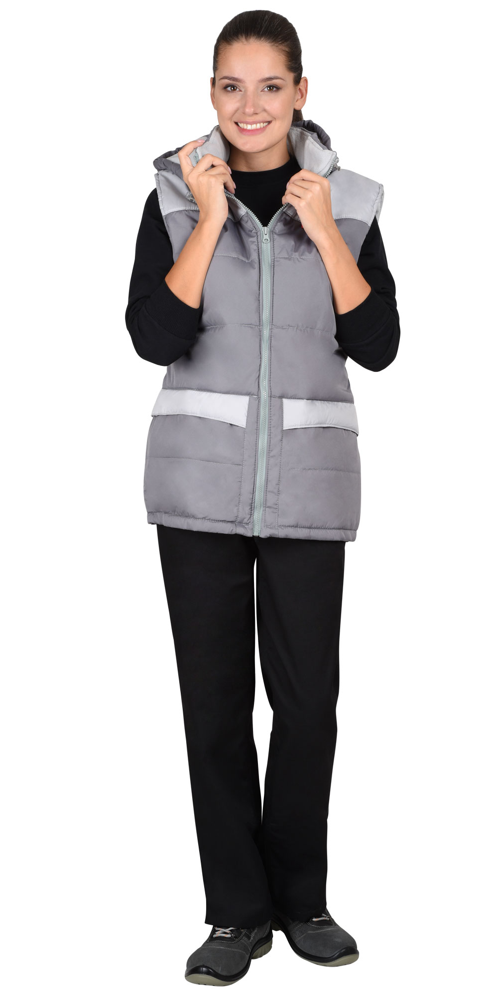 Жилет "ЕВРОНИКА" утепленный, серый с капюшоном на подкладке (флис) (ЧЗ)