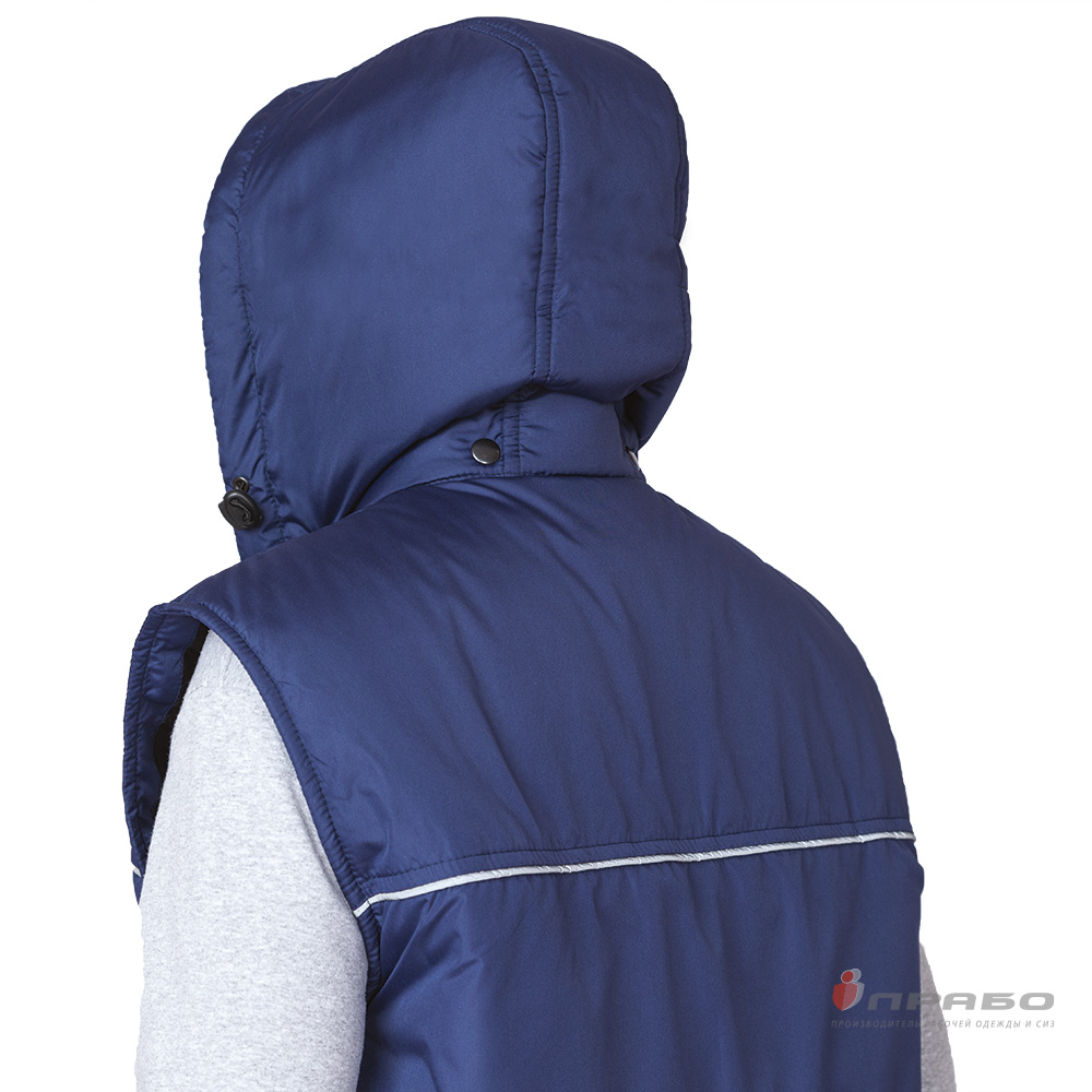 Капюшон: утеплённый, съёмный на кнопках. Объём по лицевому вырезу регулируется эластичным шнуром, продетым в кулиску и фиксаторами. Низ жилета регулируется по объёму с помощью кулиски с эластичным шнуром и фиксаторами.